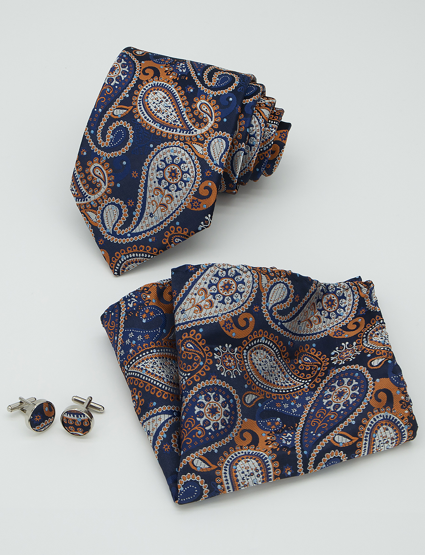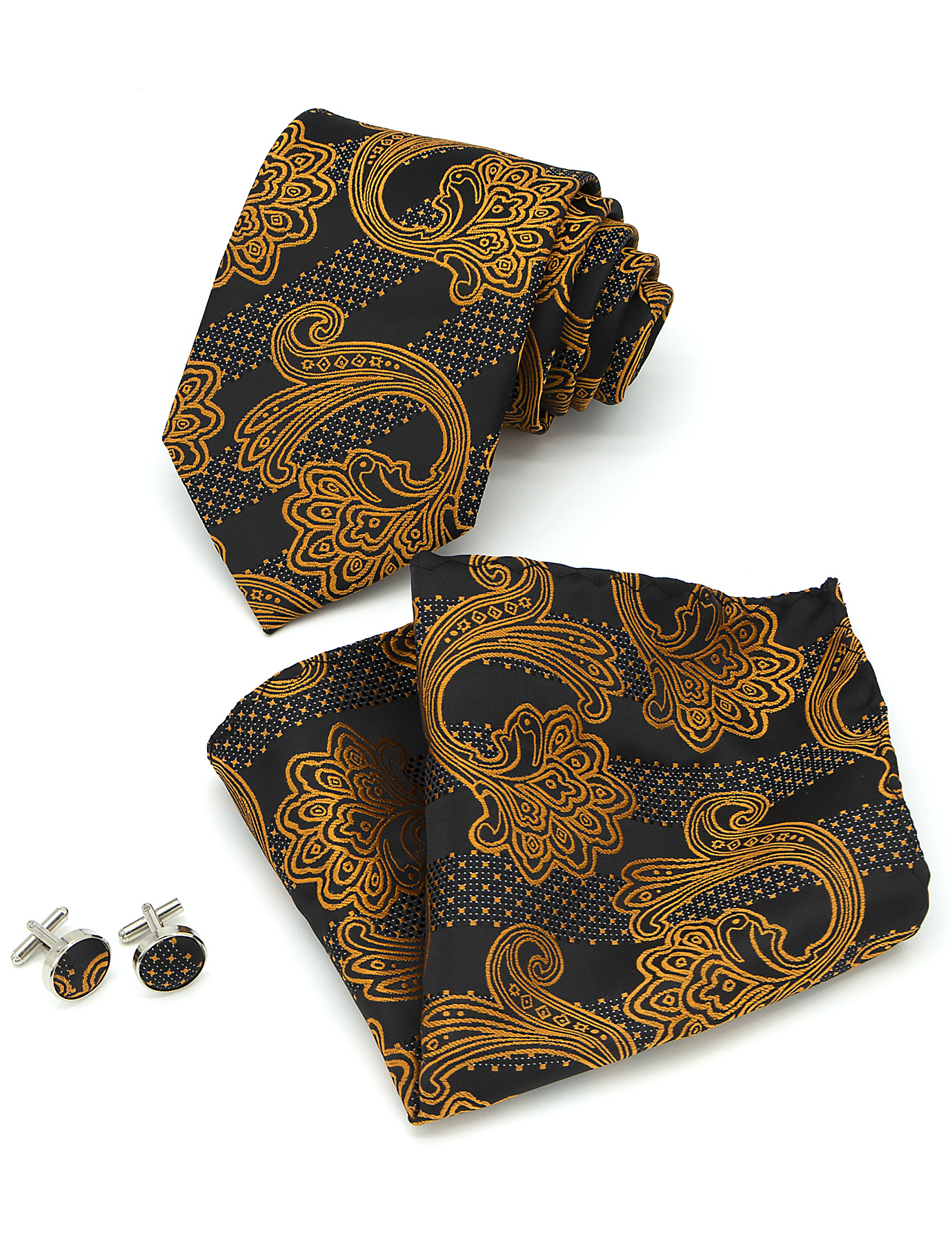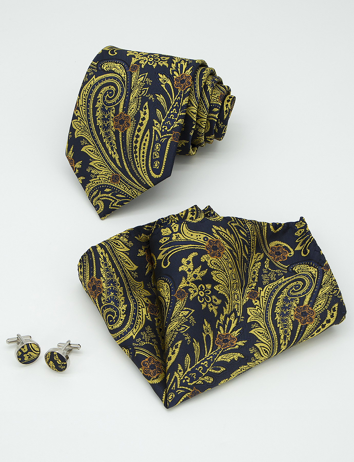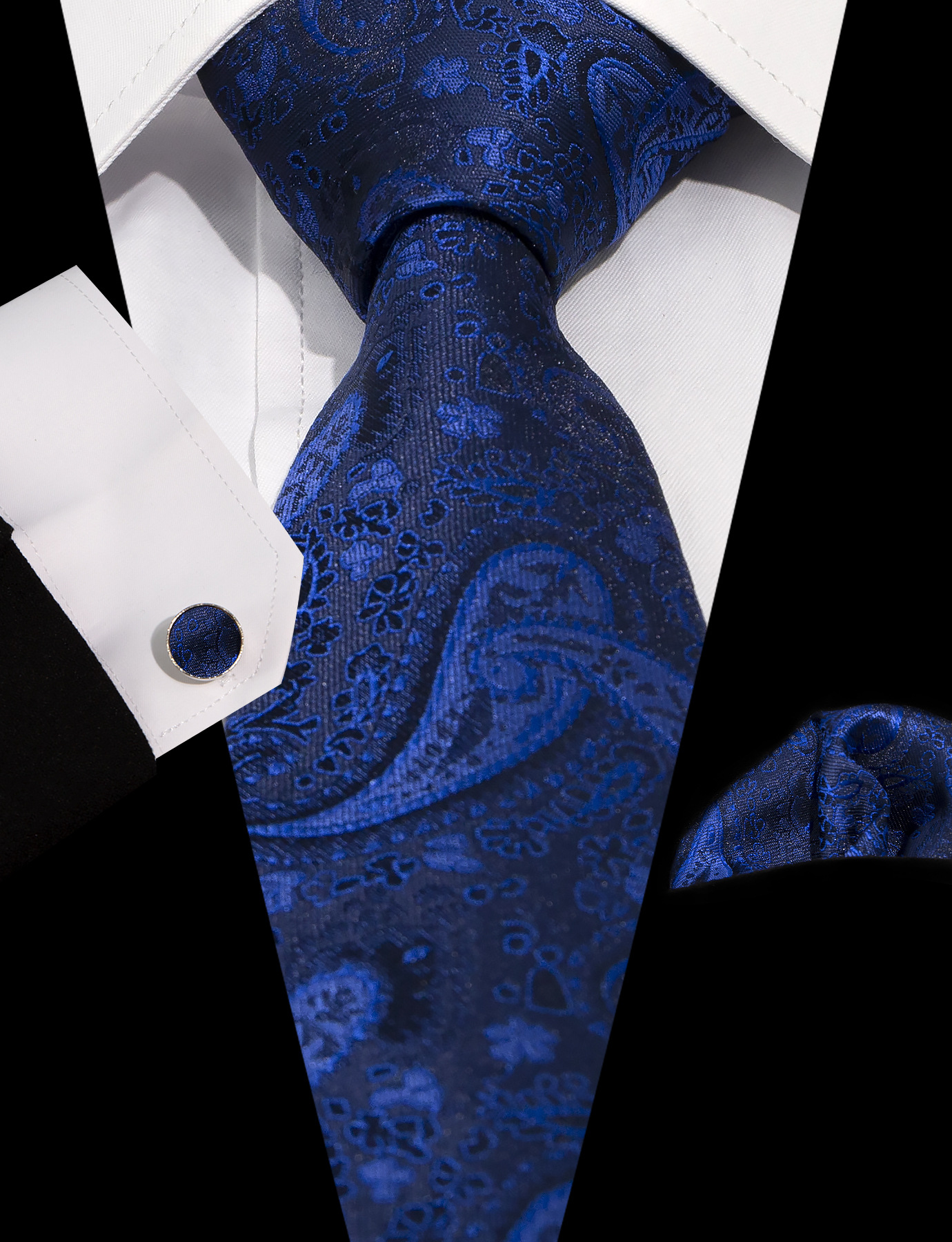 남성 넥타이 스카프 커프스 세트 비즈니스 정장 8.5cm 자카드 페이즐리 3피스 유니폼 넥타이 세트