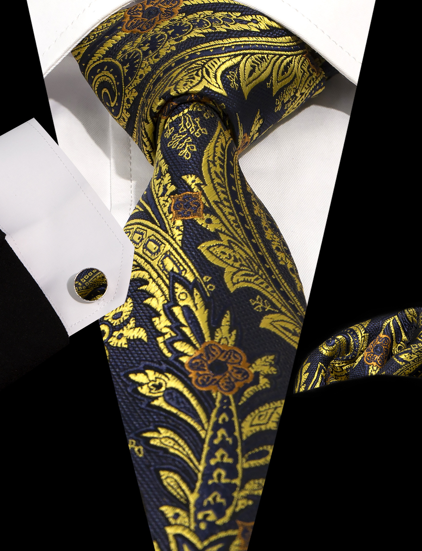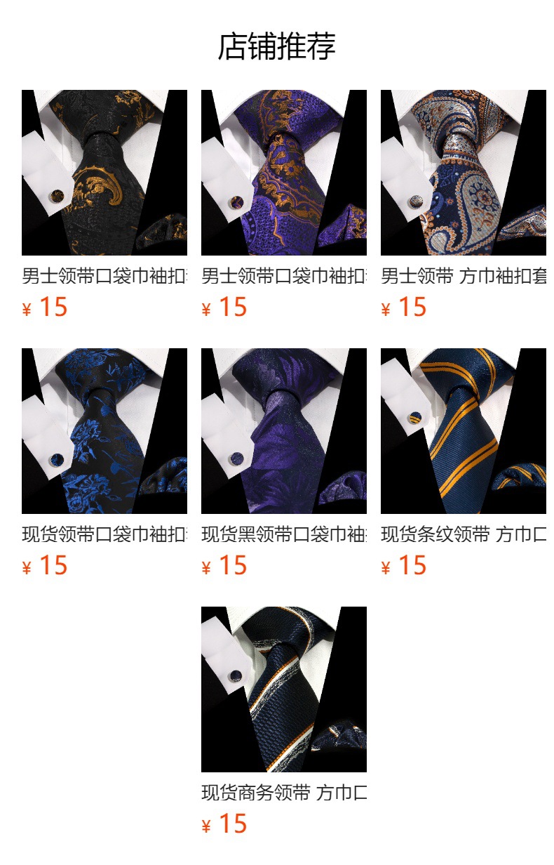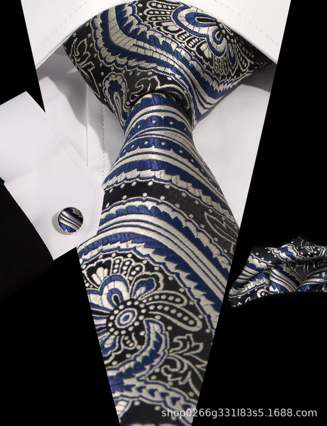 남성 넥타이 스카프 커프스 세트 비즈니스 정장 8.5cm 자카드 페이즐리 3피스 유니폼 넥타이 세트스토어 가기