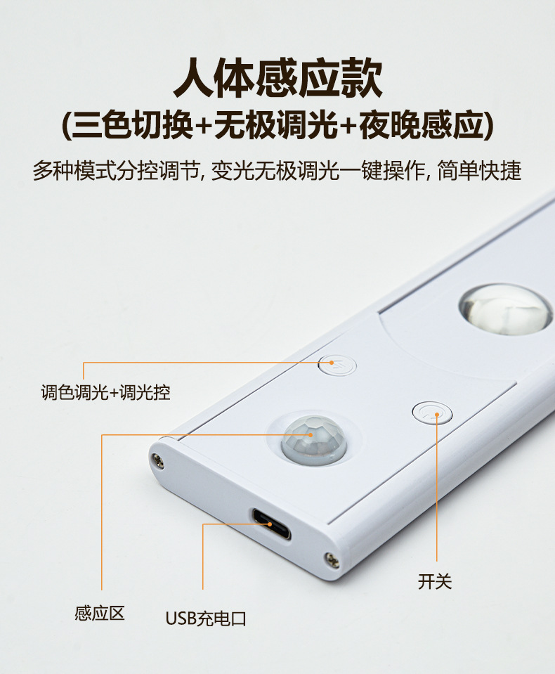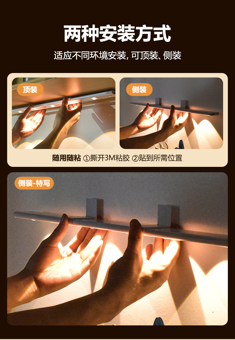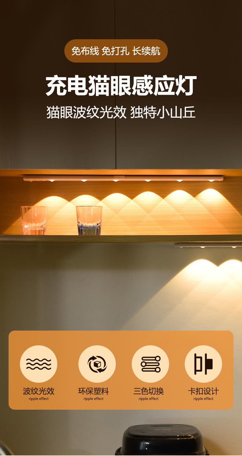 인체감지 캣아이 LED 조명, 3색 조광 가능, 배선 불필요, 충전식, 자석 부착, 옷장/와인장 조명, 야간 조명, 가정용스토어 가기