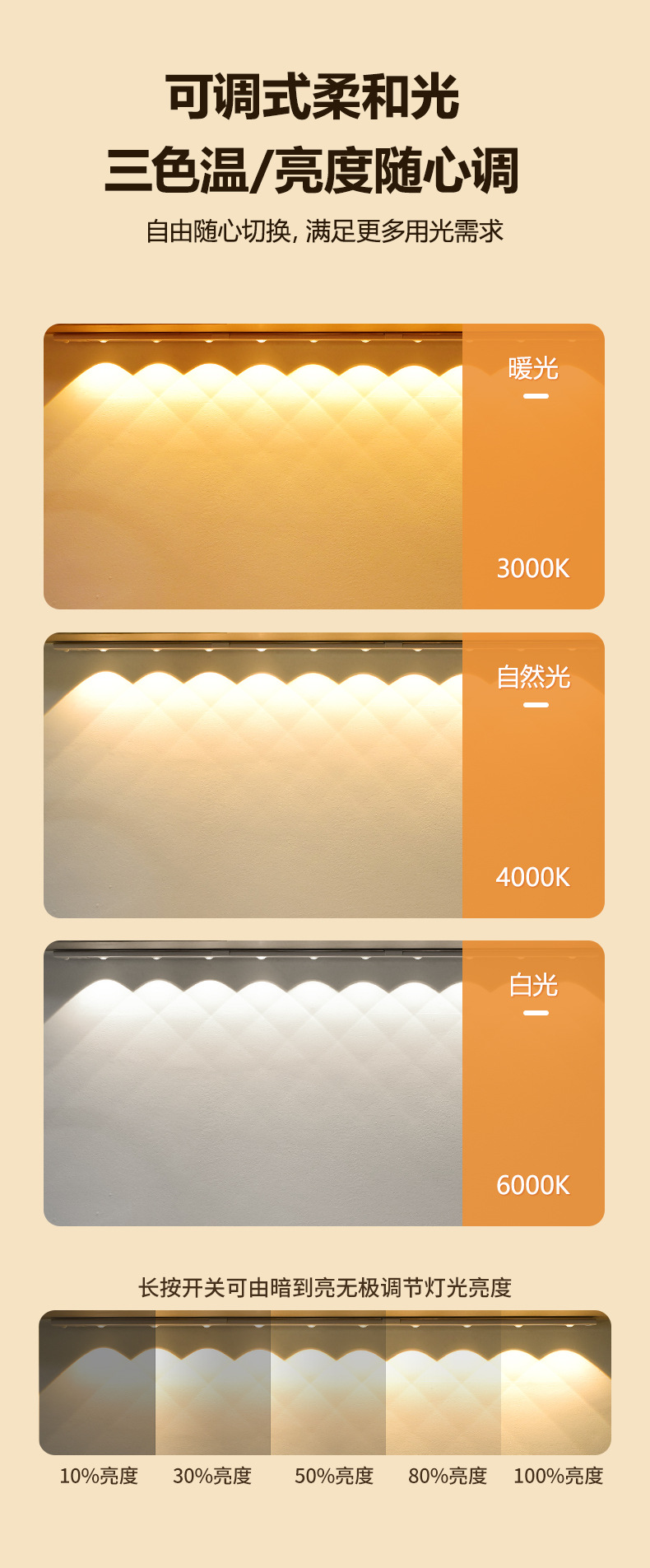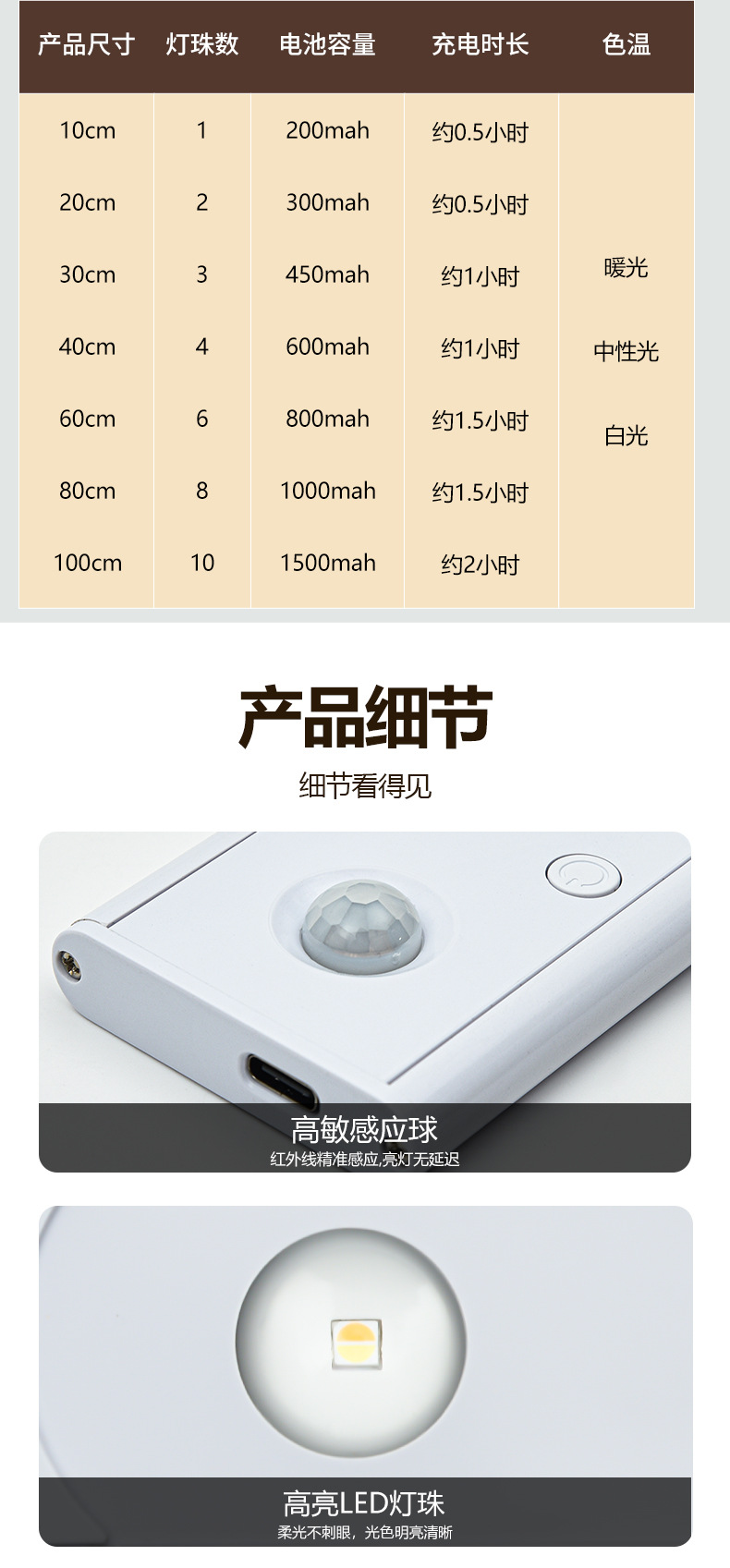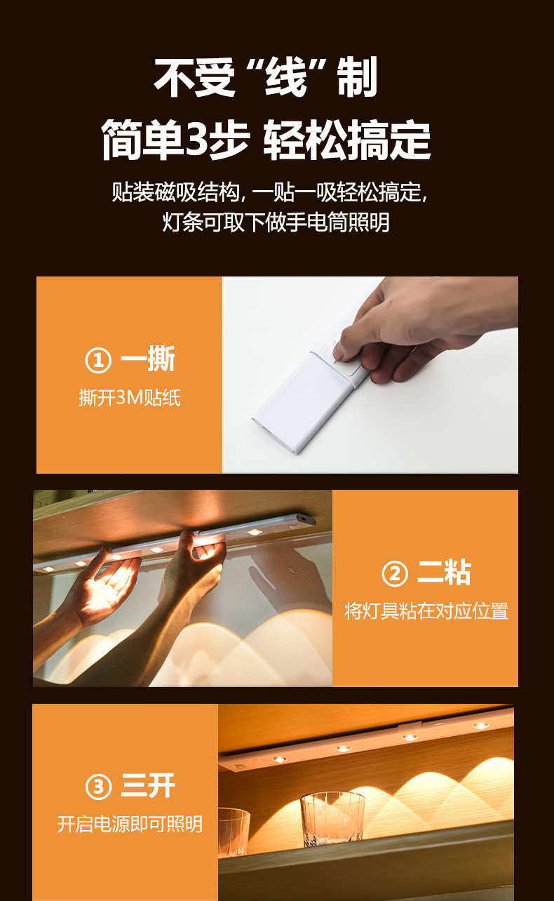 인체감지 캣아이 LED 조명, 3색 조광 가능, 배선 불필요, 충전식, 자석 부착, 옷장/와인장 조명, 야간 조명, 가정용스토어 가기