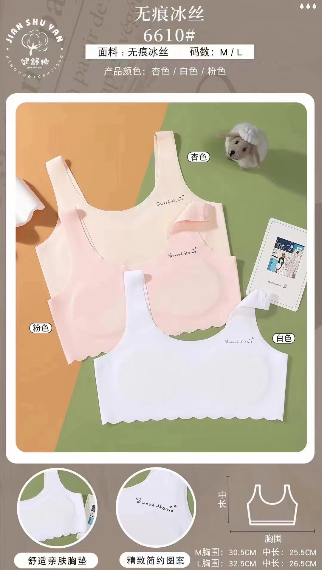 발달기 무봉제 아이스 실크 여아용 속옷 봄 여름 피부 친화적 영어 알파벳 중학생 스포츠 브라스토어 가기