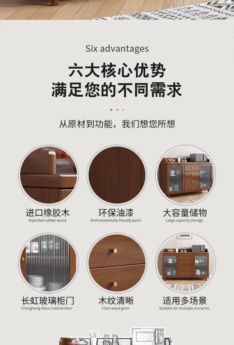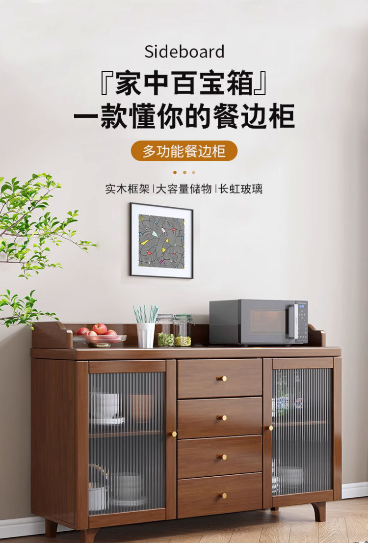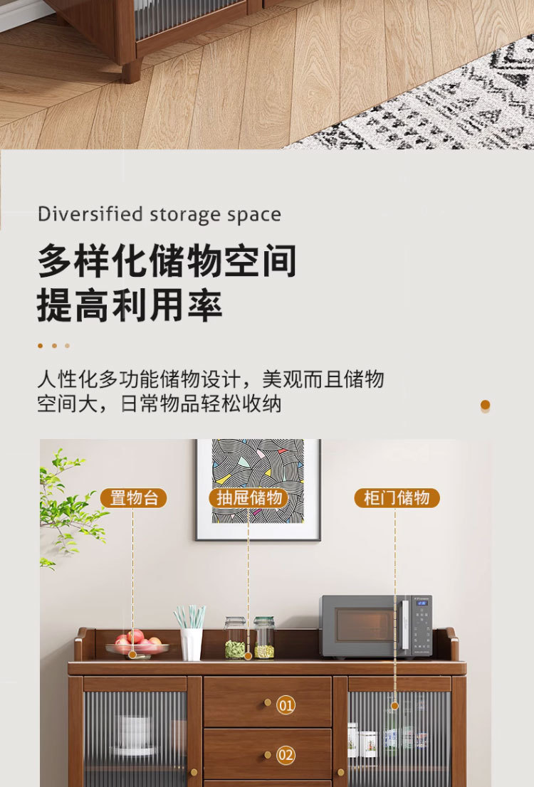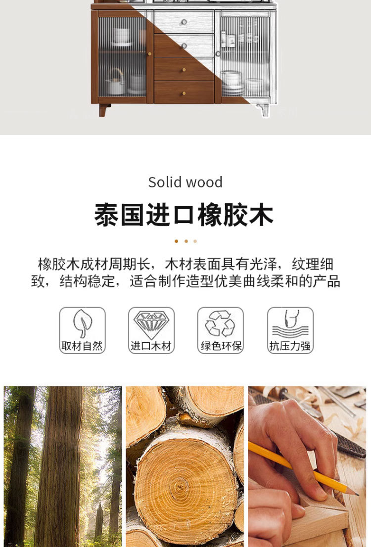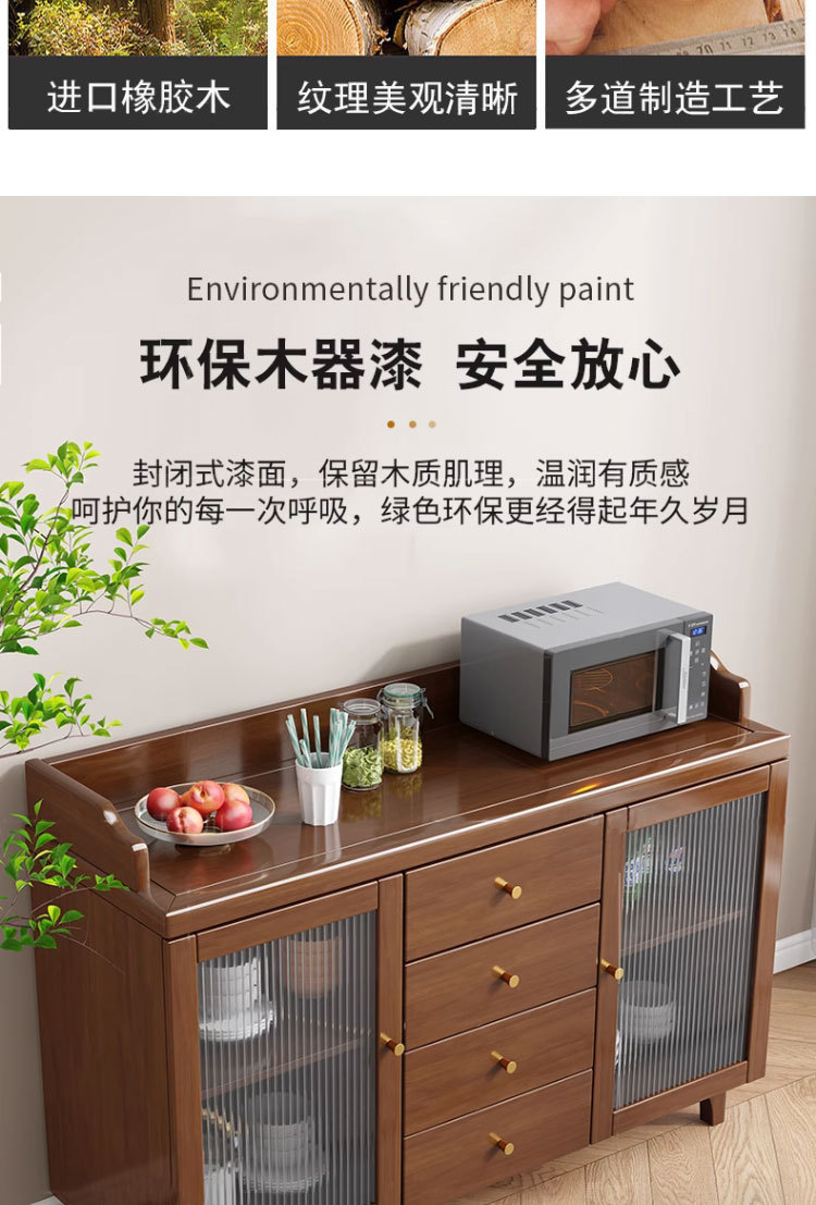 새로운 중국 스타일 단단한 나무 거실 보관 차 캐비닛 현대 미니멀리스트 보관 캐비닛 주방 찬장 고무 나무 사이드 보드