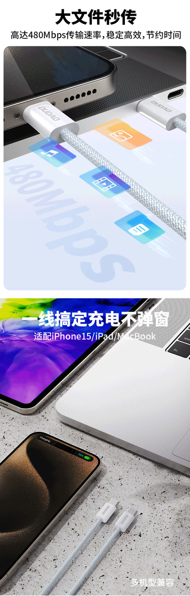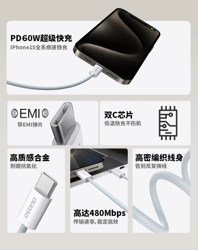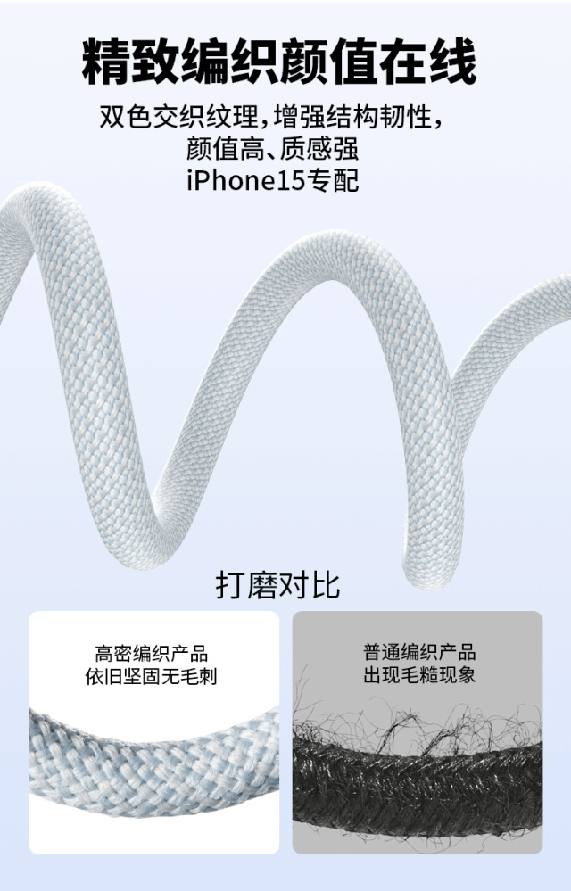 3.高密编织线身,双色交织纹理,增强结构韧性,颜值高、质感强