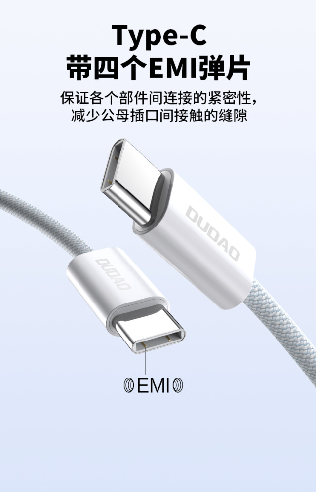 2.Type-C 带四个EMI弹片,保证各个部件间连接的紧密性,减少公母插口间接触的缝隙