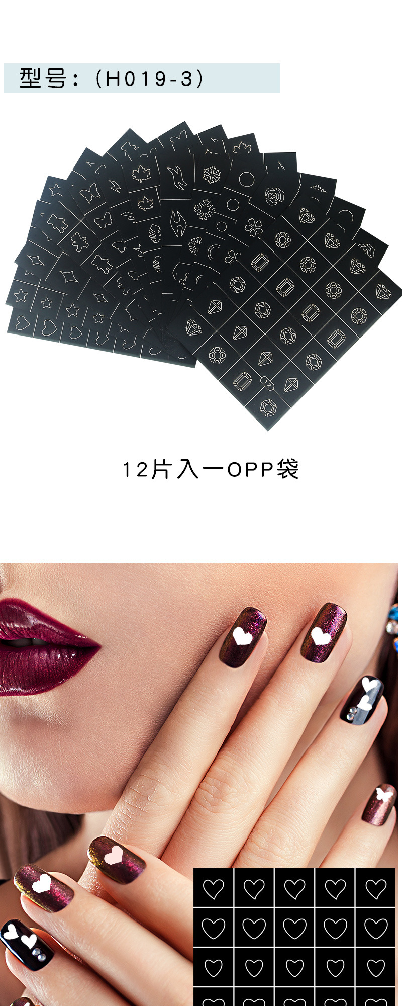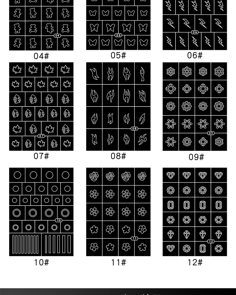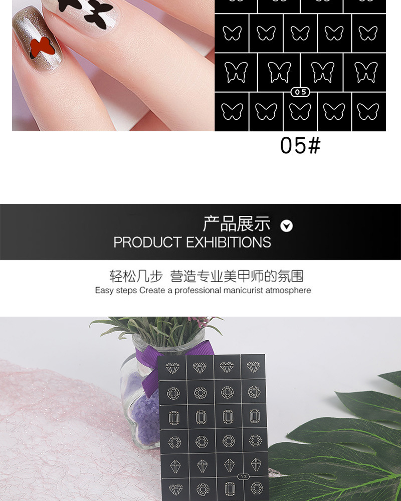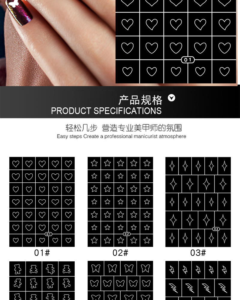뜨거운 판매 중공 네일 스티커 사랑 별 가시 불꽃 번개 미니 눈송이 다이아몬드 네일 스티커 제조 업체 폭발스토어 가기
