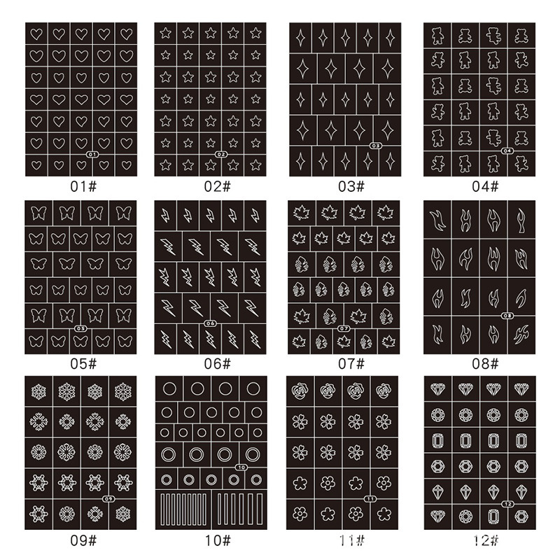뜨거운 판매 중공 네일 스티커 사랑 별 가시 불꽃 번개 미니 눈송이 다이아몬드 네일 스티커 제조 업체 폭발