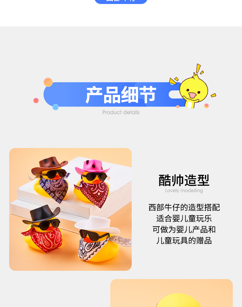 서부 카우보이 스타일 장난감, 삑삑이 소리나는 오리 인형, 어린이 수영장 오리, 웨딩 파티용 던지기 인형