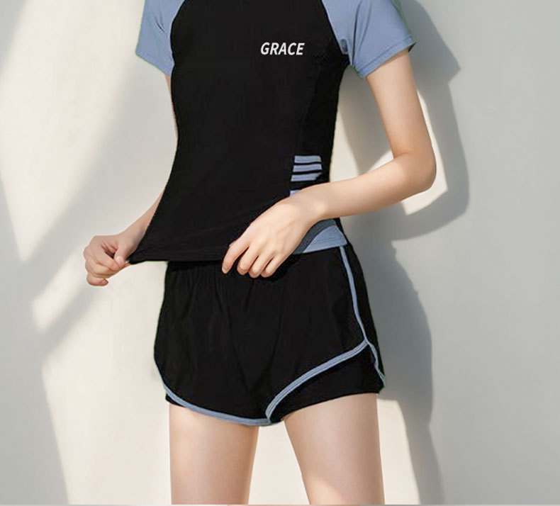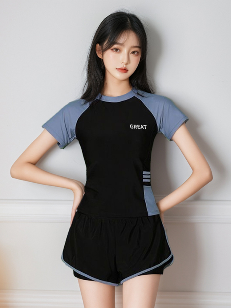 인기 여성 수영복, 스포츠 스타일 투피스 세트, 캐주얼한 배 가리기, 슬림 효과, 보수적인 온천 휴가 수영복 도매