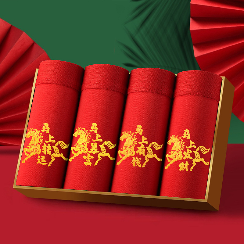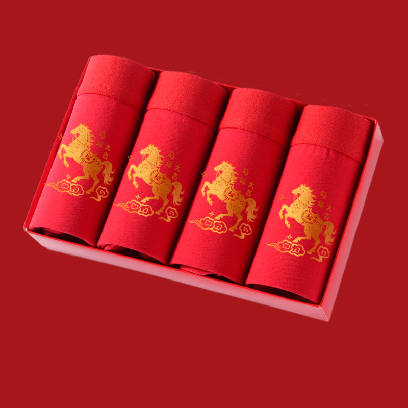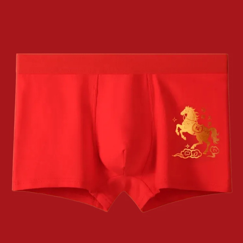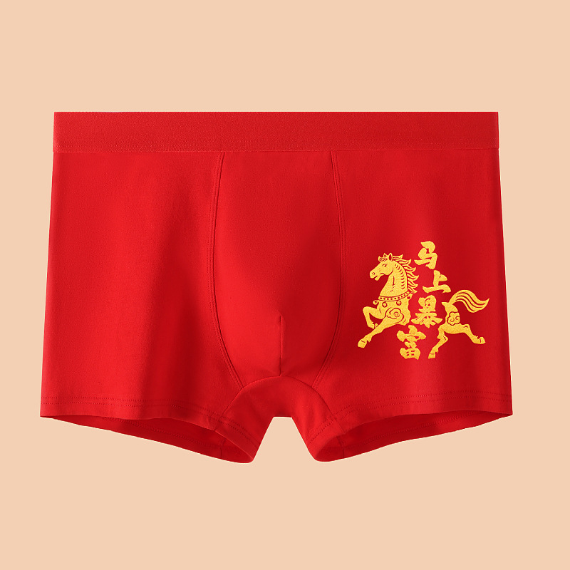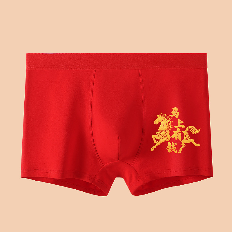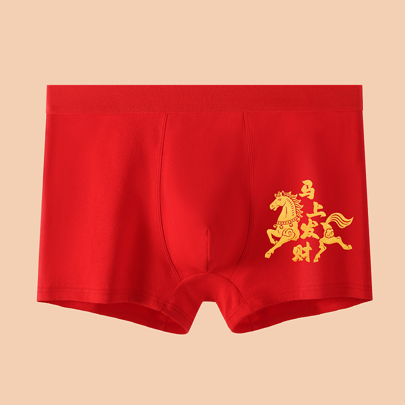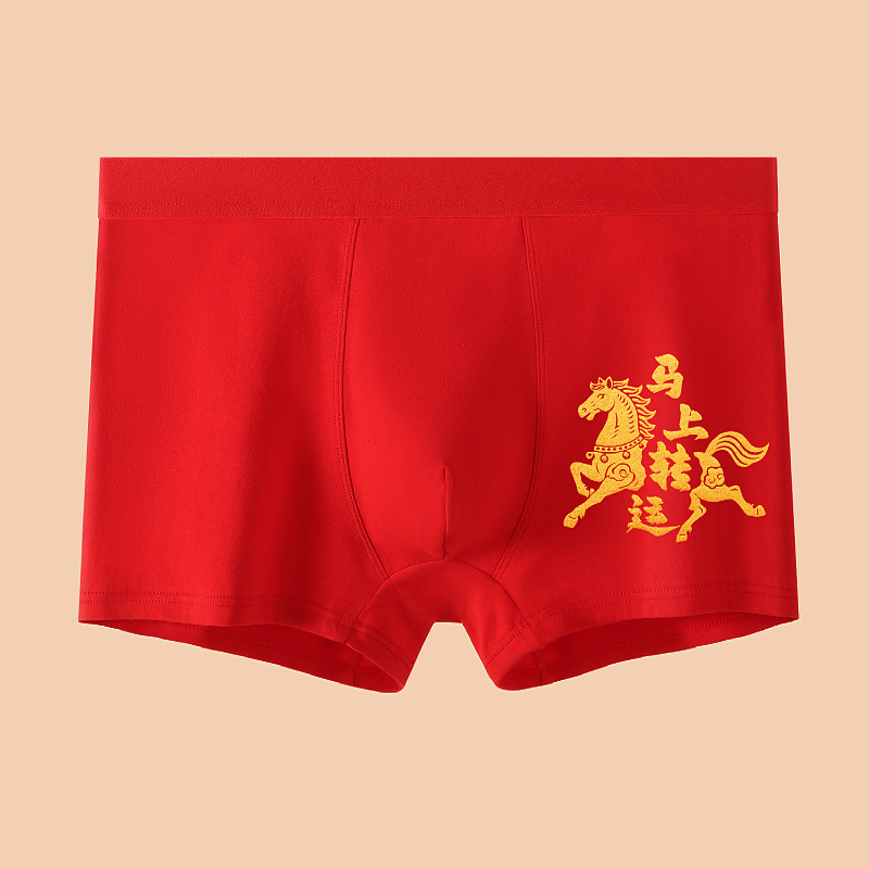 말의 해 남성용 빨간색 사각팬티 순면 중간 허리 생일년 반바지 새해 축제 항균 빨간색 팬티 도매