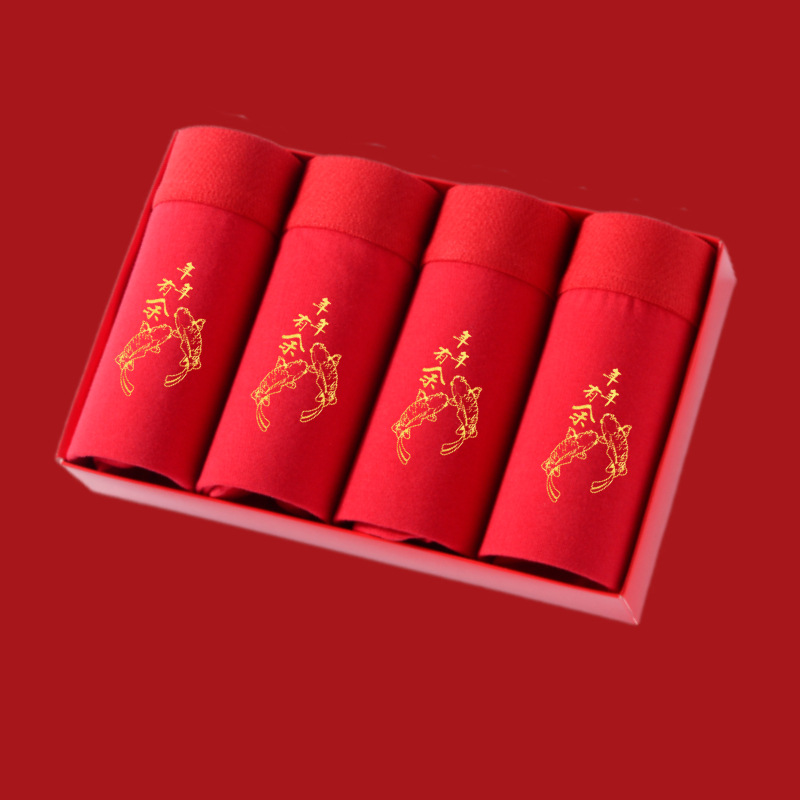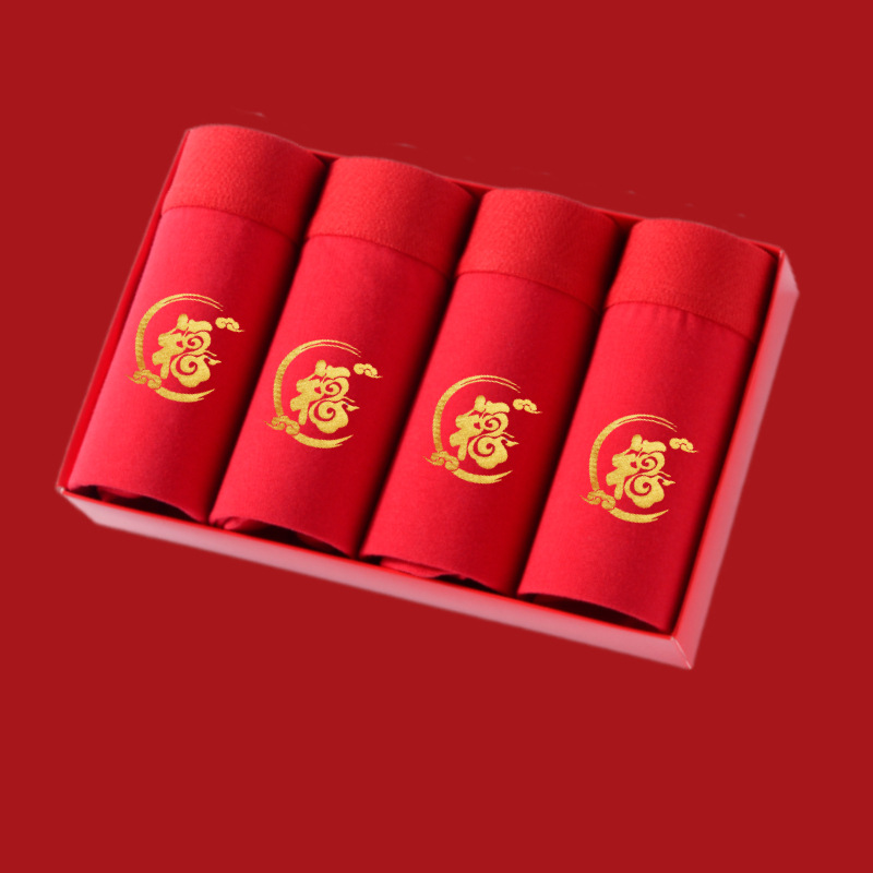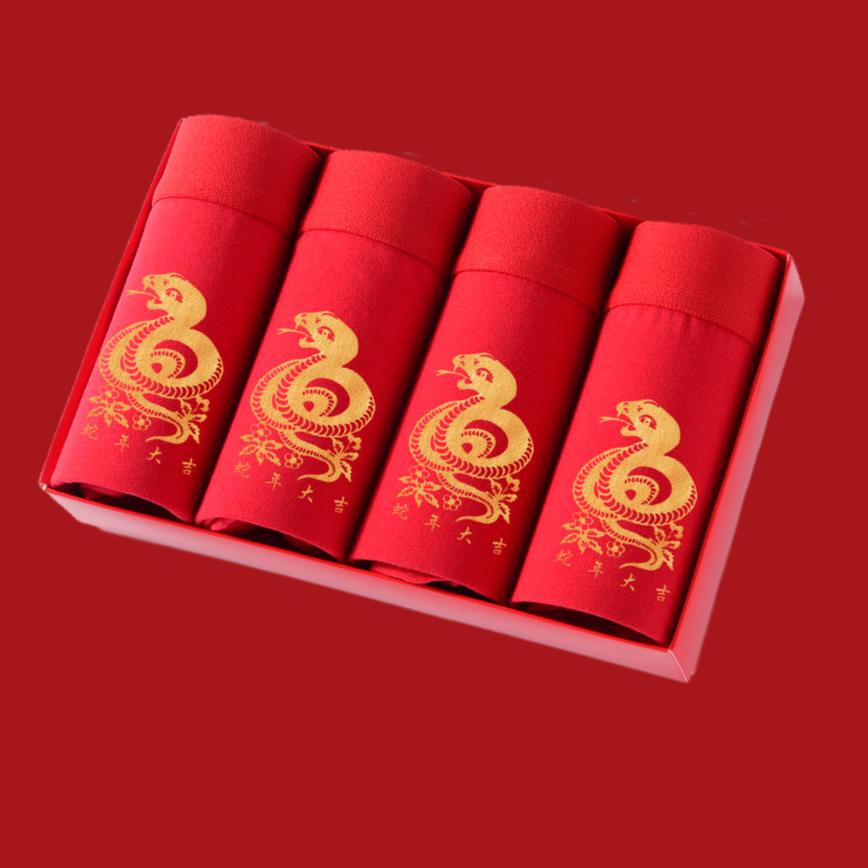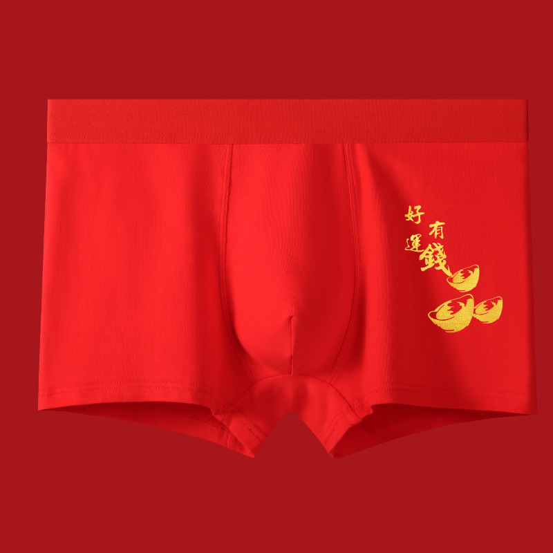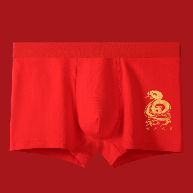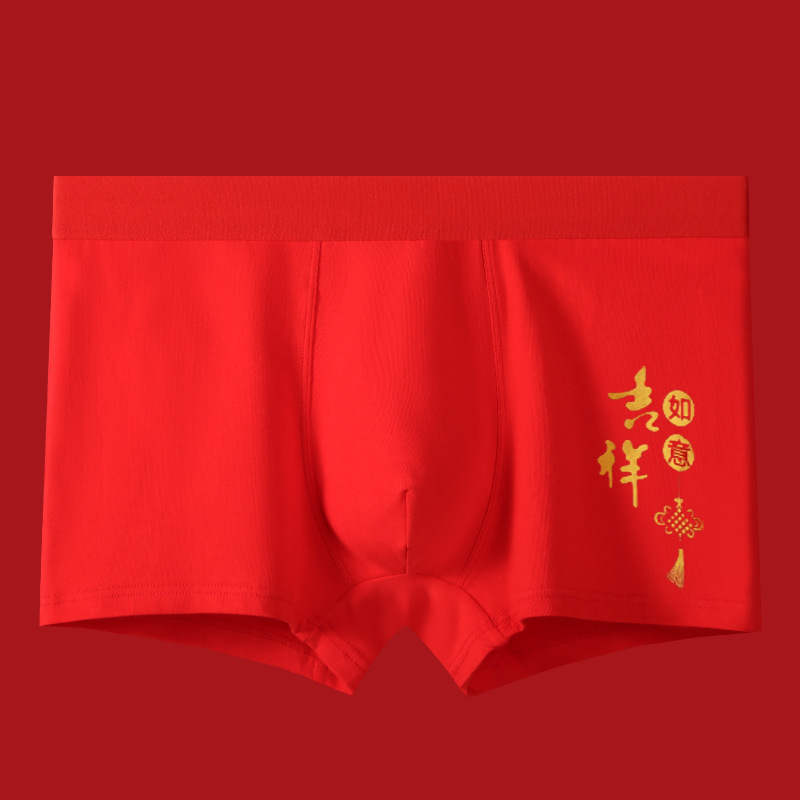 말의 해 남성용 빨간색 사각팬티 순면 중간 허리 생일년 반바지 새해 축제 항균 빨간색 팬티 도매