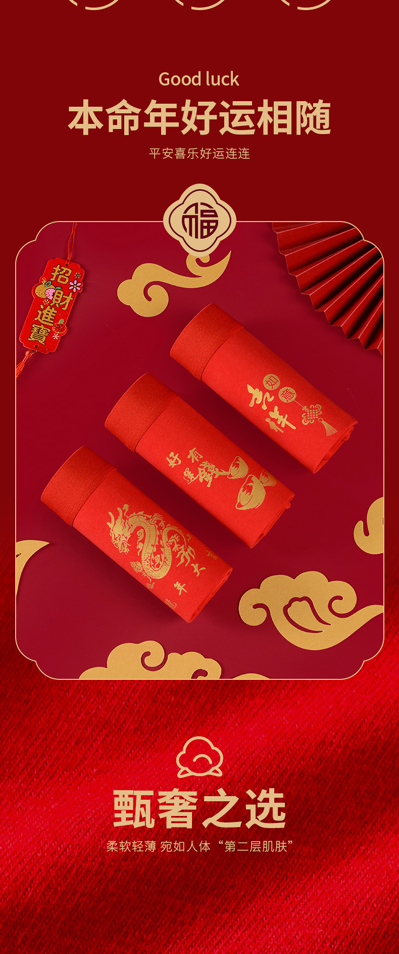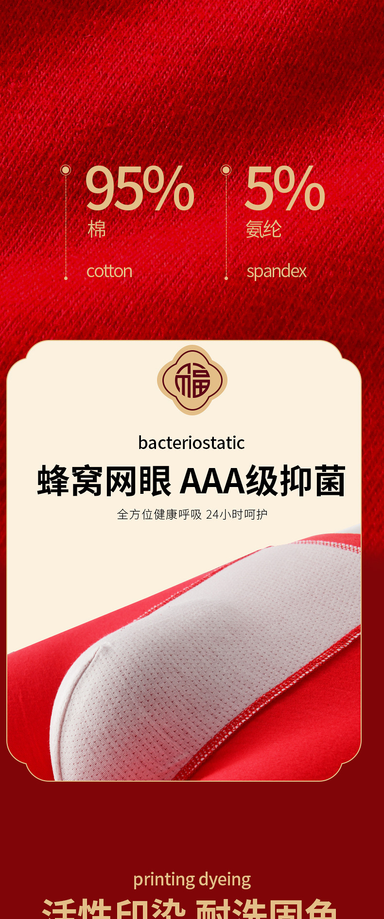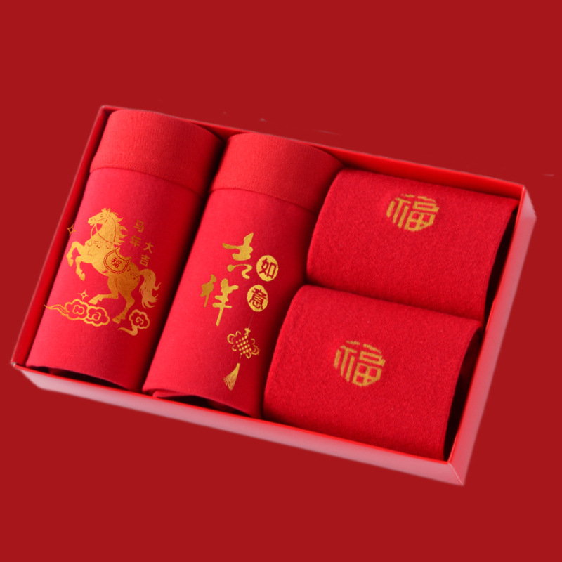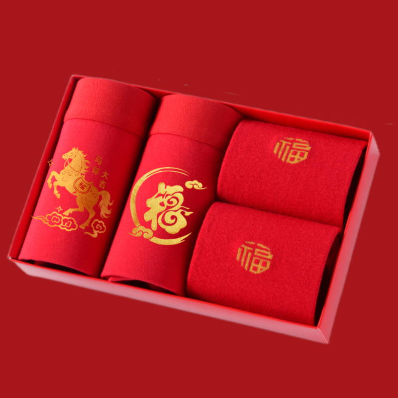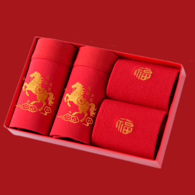 말의 해 남성용 빨간색 사각팬티 순면 중간 허리 생일년 반바지 새해 축제 항균 빨간색 팬티 도매