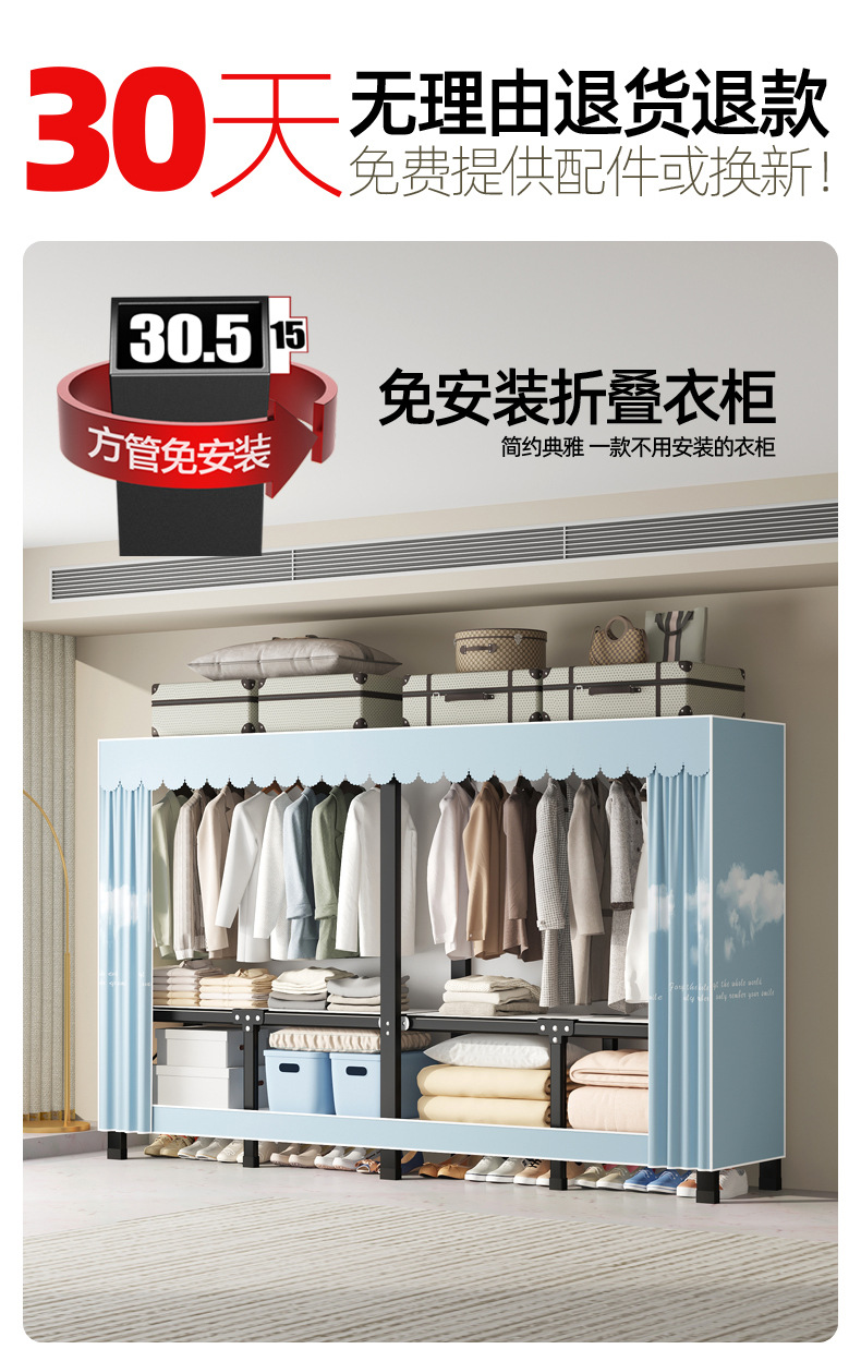 접이식 설치 무료 간단한 옷장 홈 침실 렌탈룸 수납 캐비닛 강력하고 튼튼한 천 옷장