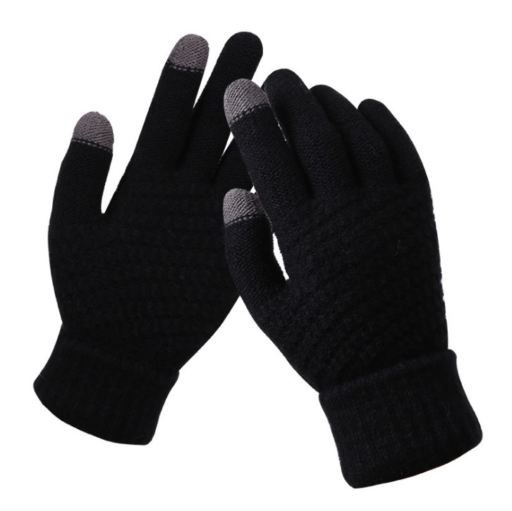 터치 스크린 장갑 겨울 남자와 여자 커플 기모 두꺼운 양모 미끄럼 방지 승마 손가락 방한 니트 따뜻한 장갑