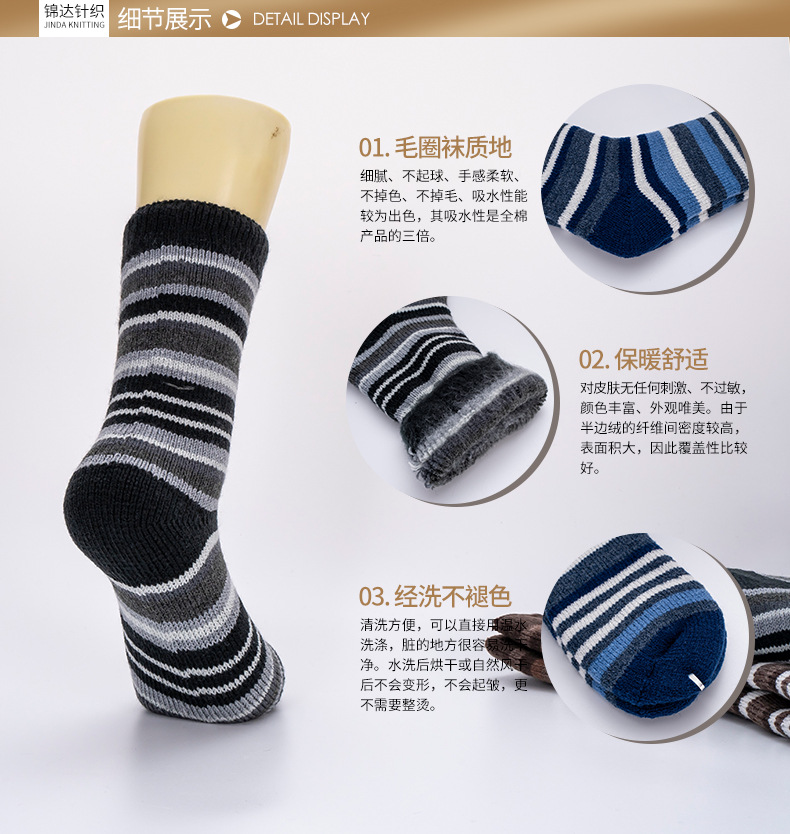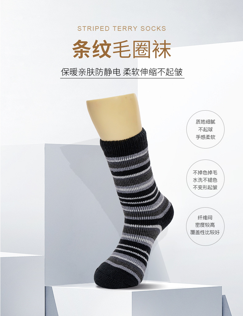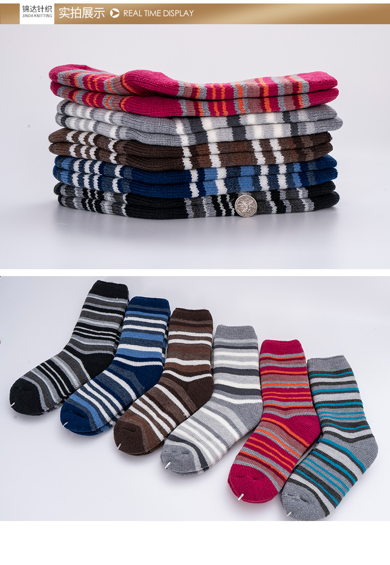 가을과 겨울 두꺼운 튜브를 재고 크로스 보더 간단한 스트라이프 테리 양말 테리 양말 따뜻한 캐주얼 면화 양말 도매