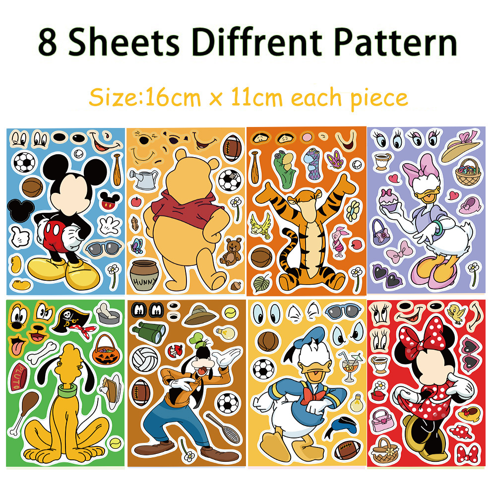 뜨거운 만화 장난감 퍼즐 스티커 영화 캐릭터 얼굴 변경 얼굴 스티커 만들기 DIY 방수 스티커스토어 가기