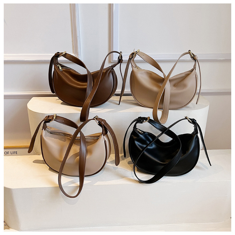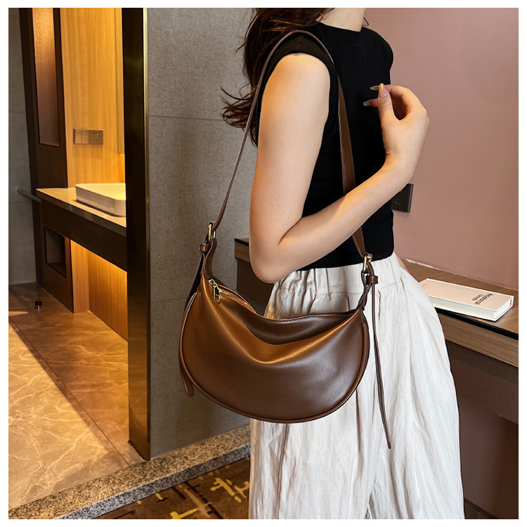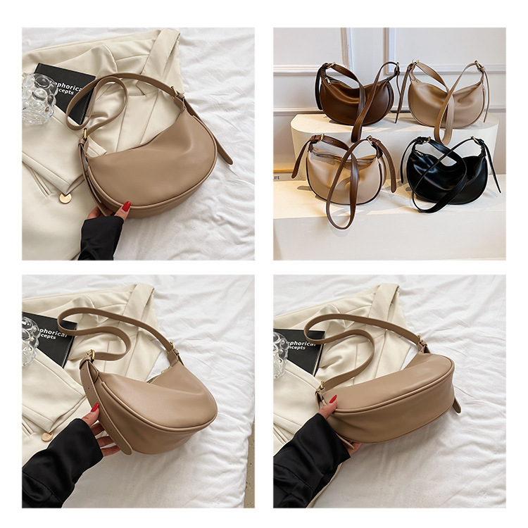 여성을위한 솔리드 컬러 숄더 백 2025 새로운 인터넷 연예인 간단한 어깨 겨드랑이 가방 소프트 PU 크로스 바디 백 다용도 만두 가방스토어 가기