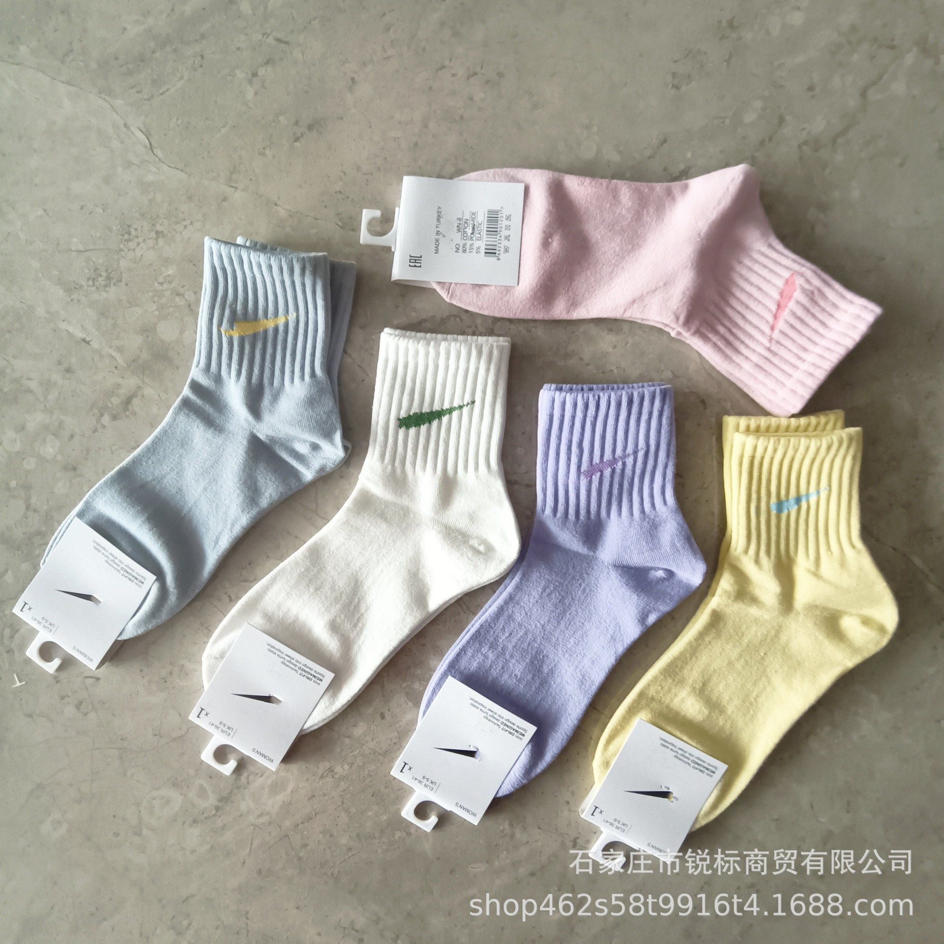 가을과 겨울 새로운 숙녀 체크 스포츠 양말 색깔면 미드 튜브 면 양말 패션 대학 스타일 캐주얼 양말 도매스토어 가기