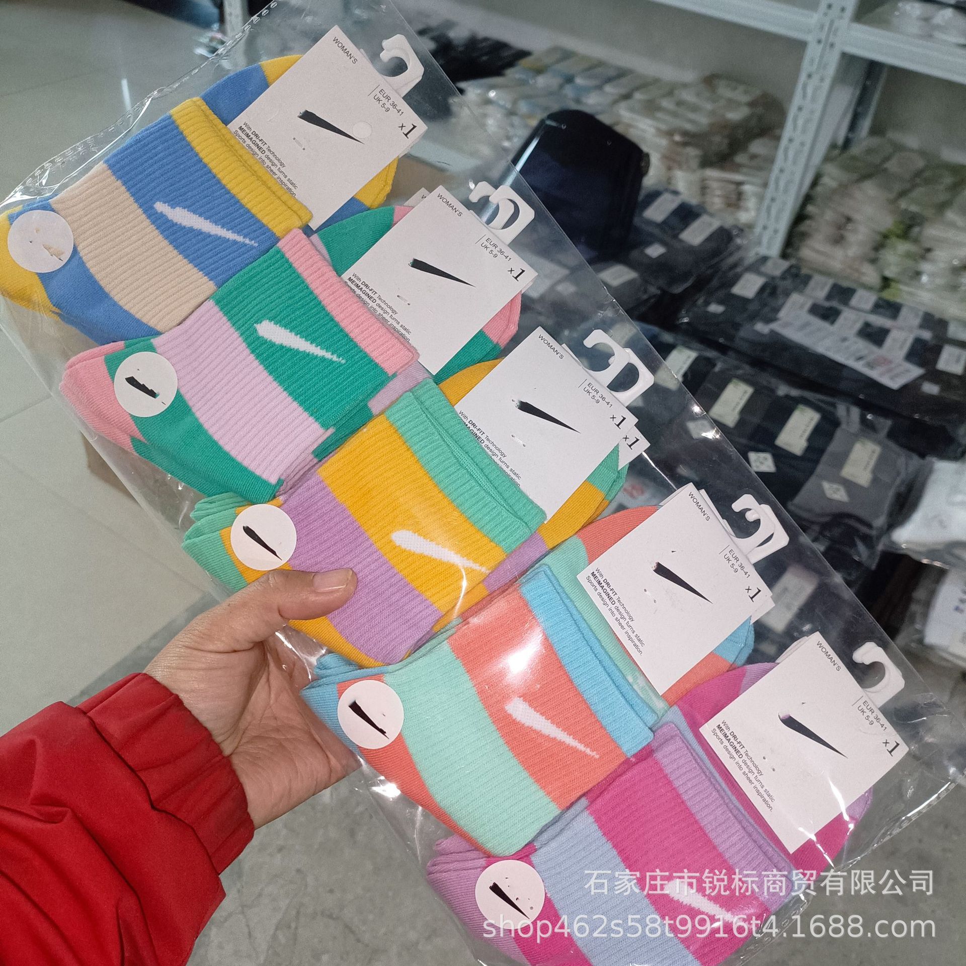 가을과 겨울 새로운 숙녀 체크 스포츠 양말 색깔면 미드 튜브 면 양말 패션 대학 스타일 캐주얼 양말 도매