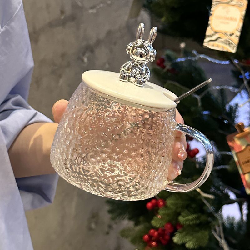 뚜껑이있는 새로운 고가 베어 컵 내열 유리 소녀 사무실 커피 컵 머리카락 세대스토어 가기