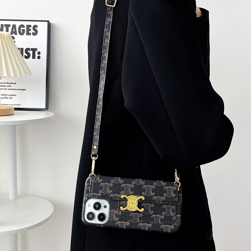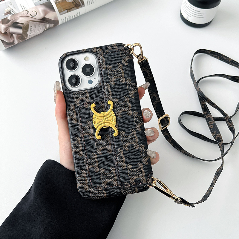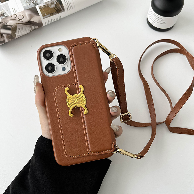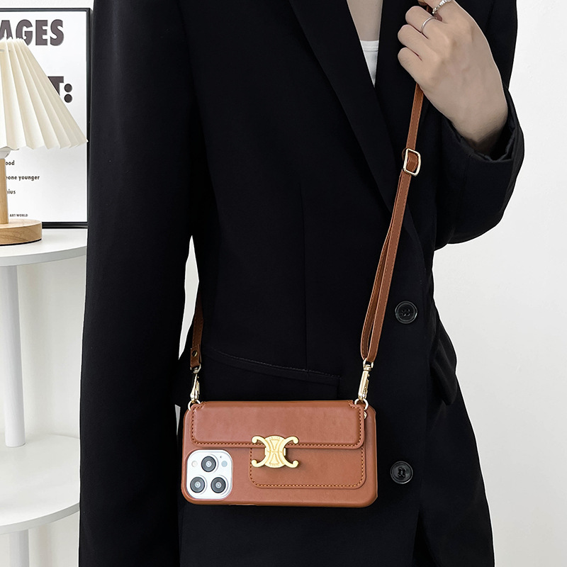 애플 16Promax 휴대 전화 케이스 새로운 15 카드 가방 14/13 크로스 바디 스트랩 끈 12 다크 브라운 조수스토어 가기