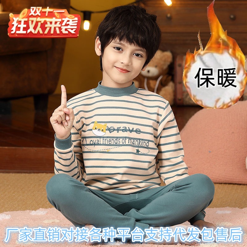 2023 새로운 가을 옷 긴 바지 큰 어린이 학생 어린이 열 기모 속옷 8-16 세 어린이 잠옷 세트스토어 가기