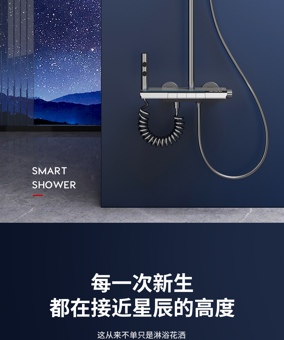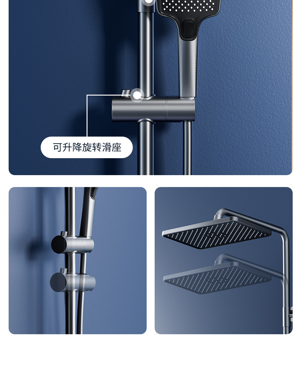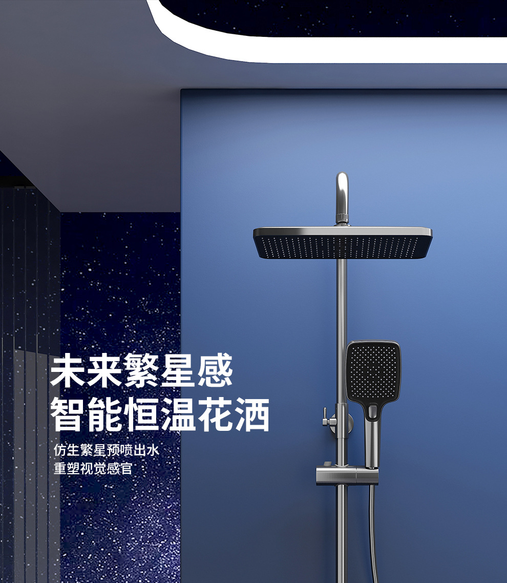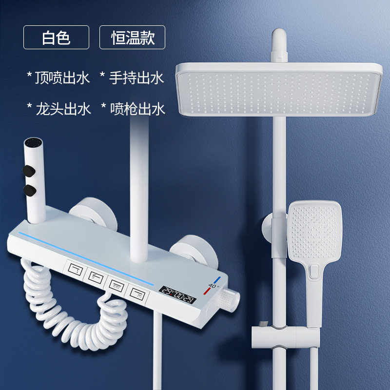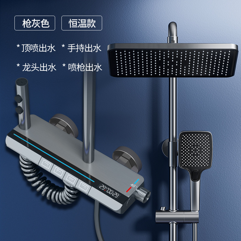 Jingshang 건 회색 일정한 온도 샤워 샤워 세트 디지털 디스플레이 비 목욕 모든 구리 목욕 가정용 욕실 가압 샤워