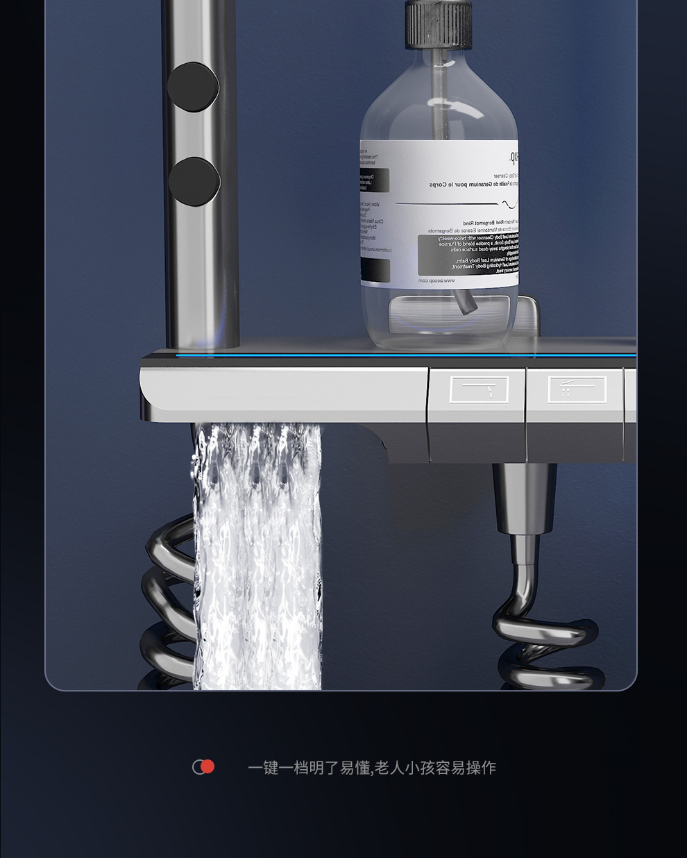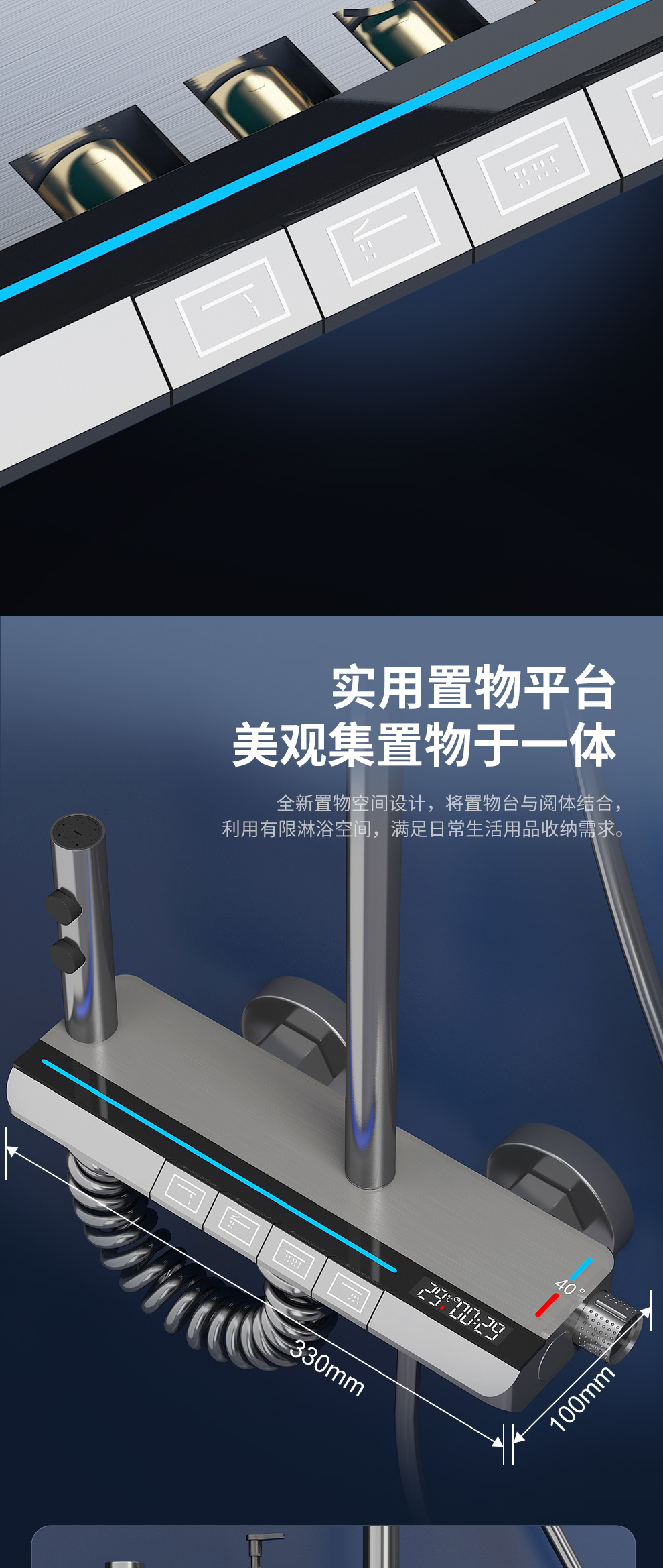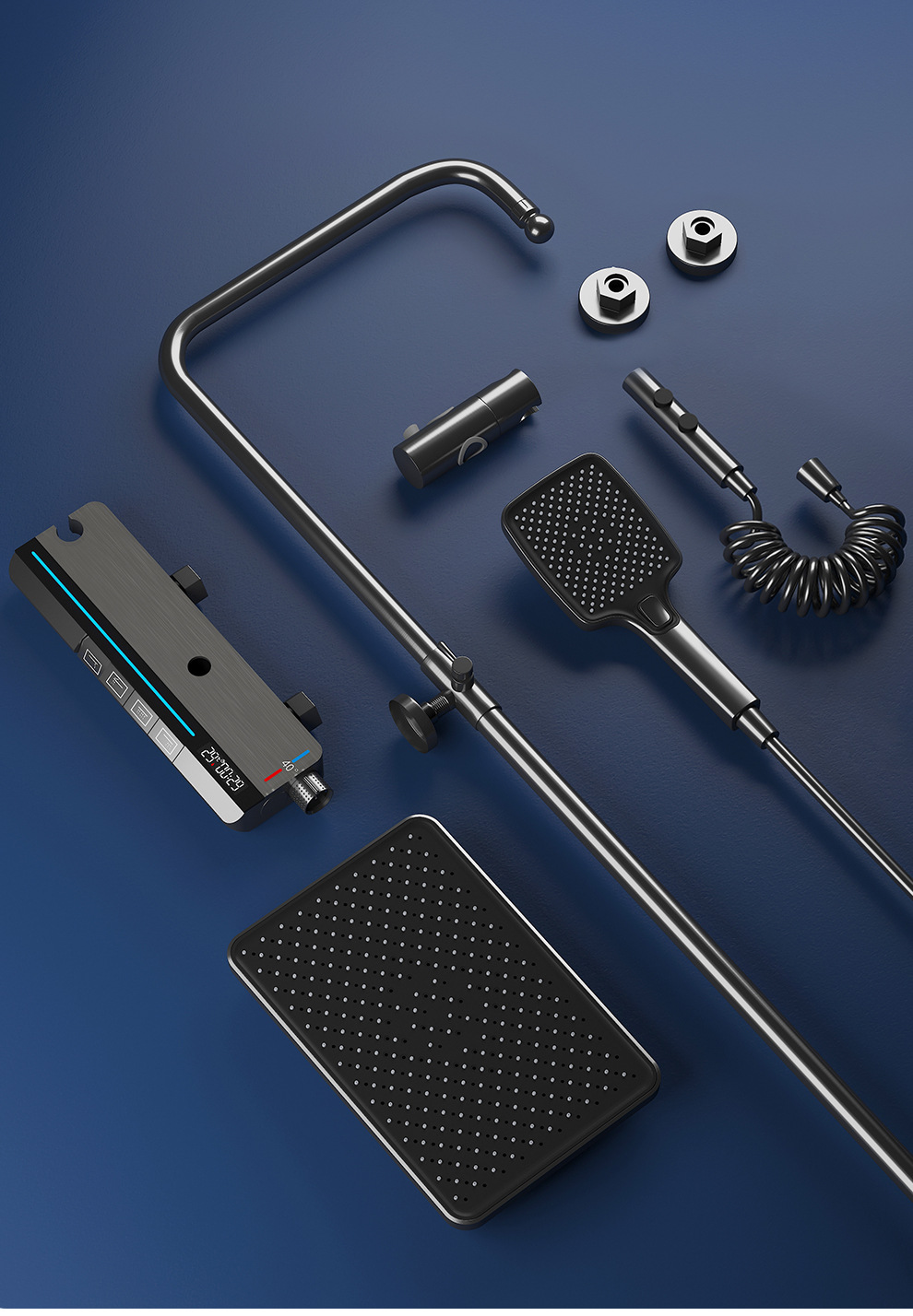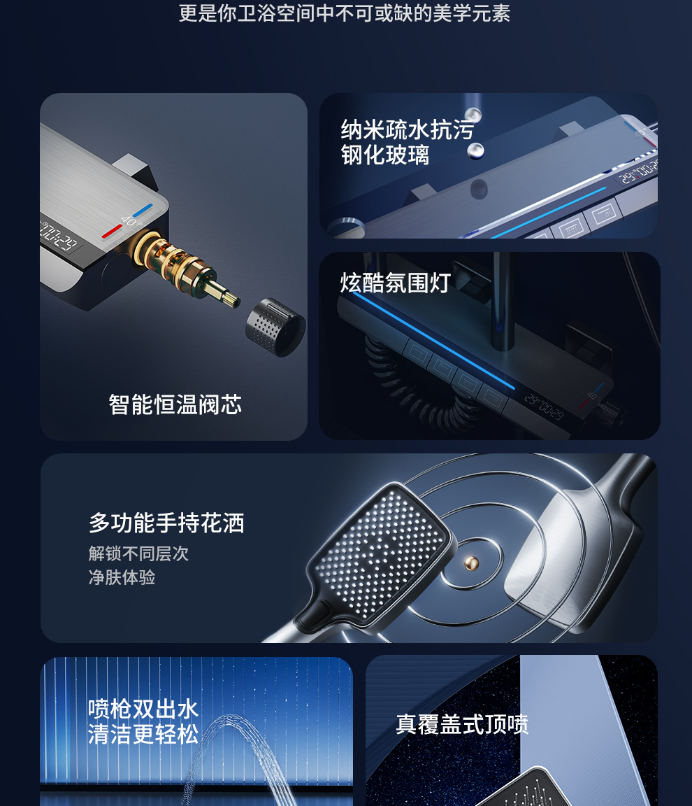 Jingshang 건 회색 일정한 온도 샤워 샤워 세트 디지털 디스플레이 비 목욕 모든 구리 목욕 가정용 욕실 가압 샤워
