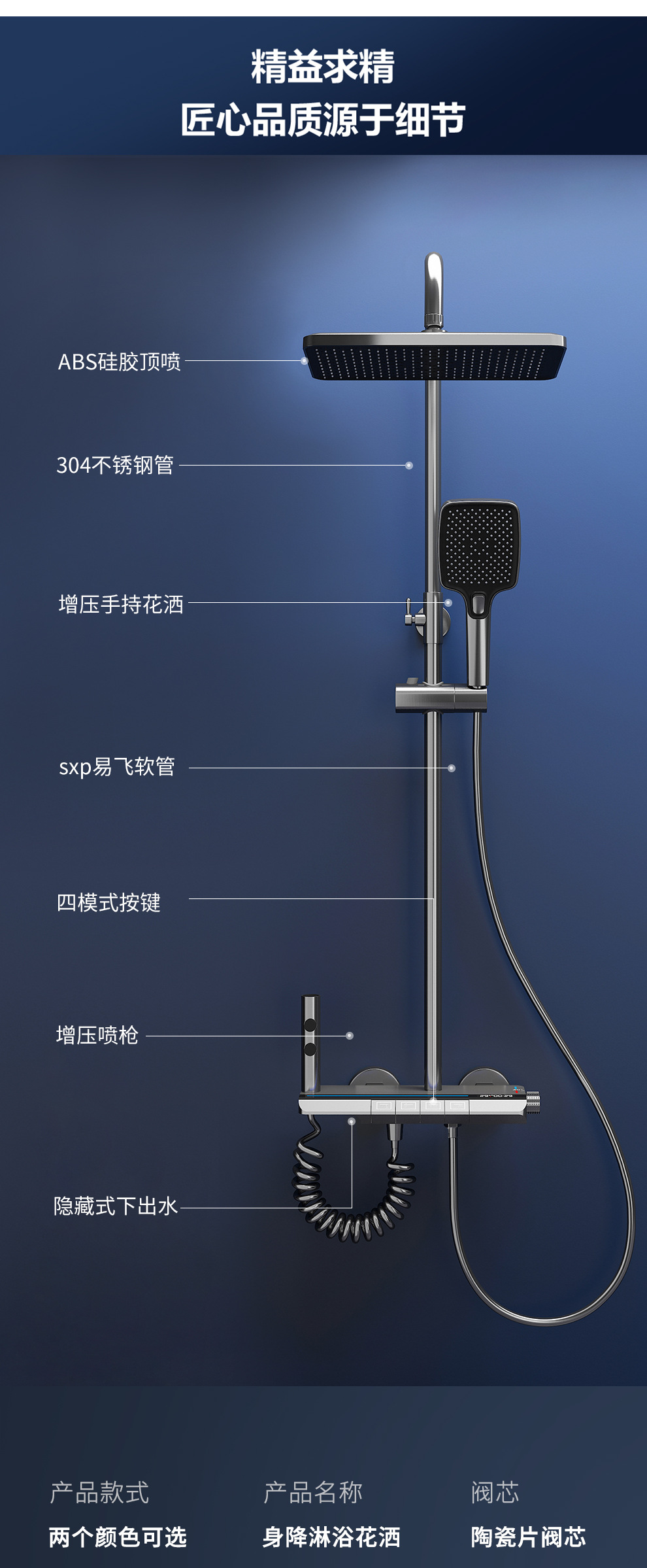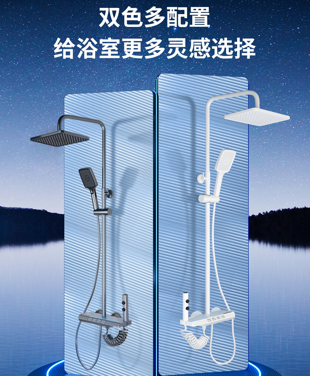 Jingshang 건 회색 일정한 온도 샤워 샤워 세트 디지털 디스플레이 비 목욕 모든 구리 목욕 가정용 욕실 가압 샤워스토어 가기
