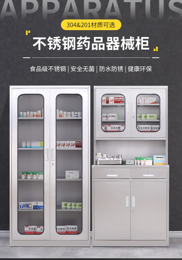 실험실 장비 보관함, 두 개의 서랍이 있는 한약 및 서양약 캐비닛, 사무실 서류용 스테인리스 파일 캐비닛, 심플하고 현대적인 디자인