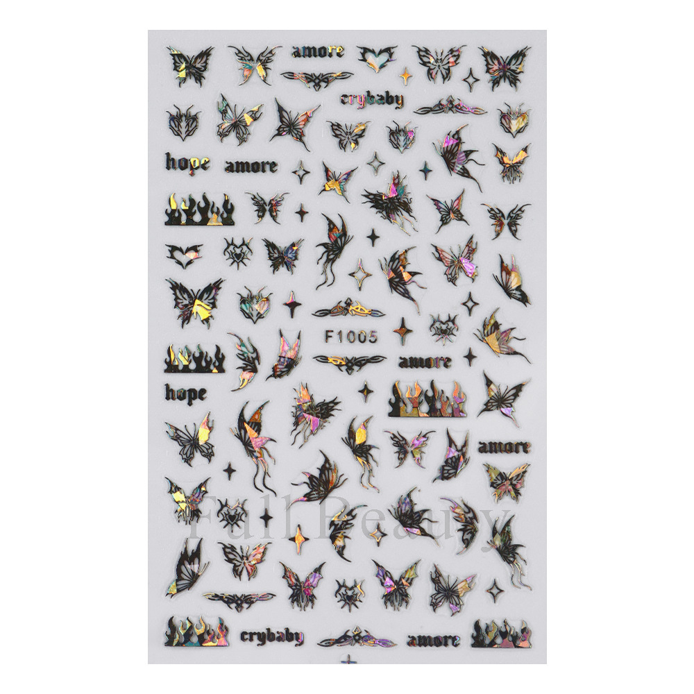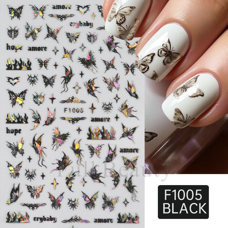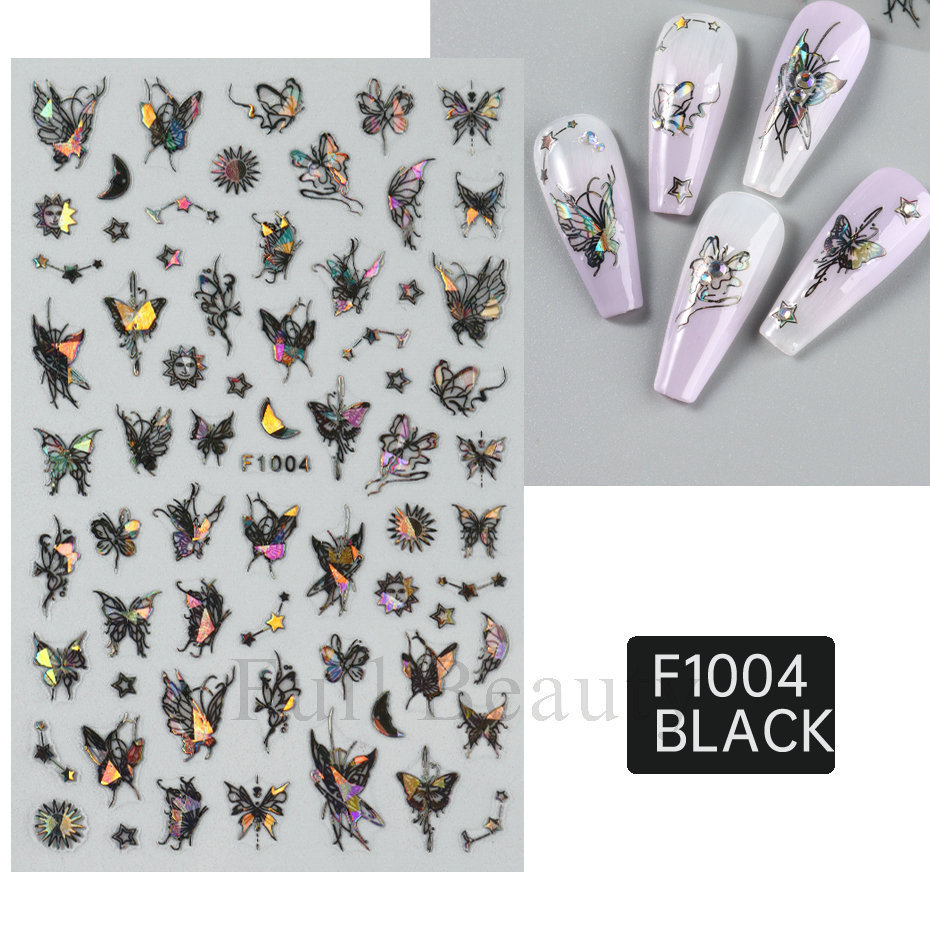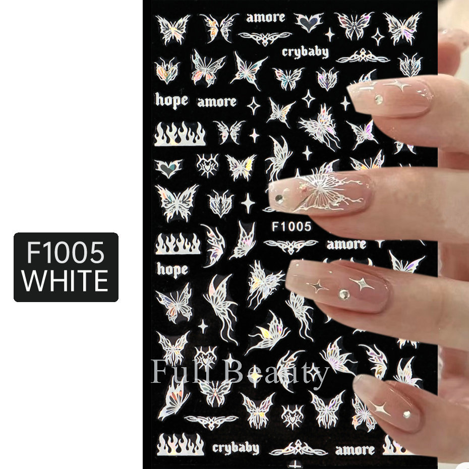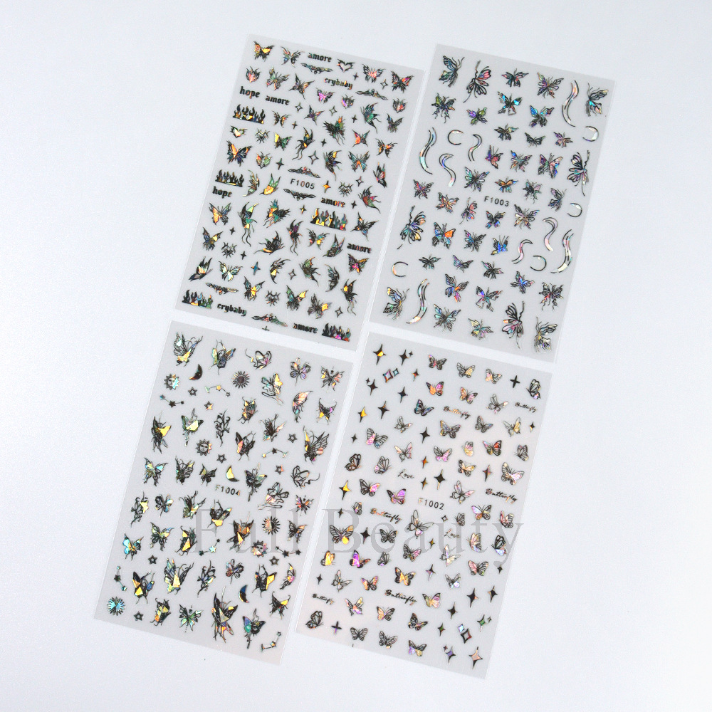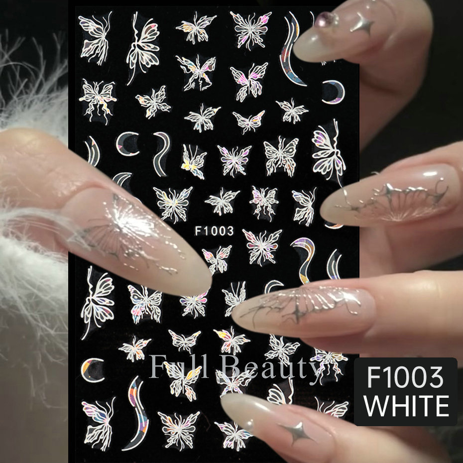 크로스 보더 새로운 레이저 컬러 나비 네일 스티커 3D 중공 흰색 나비 접착 네일 스티커 도매 손톱