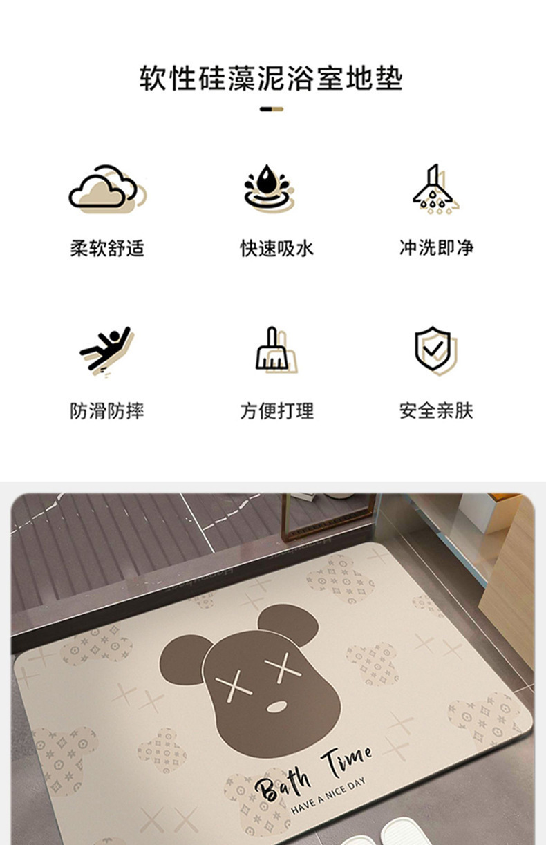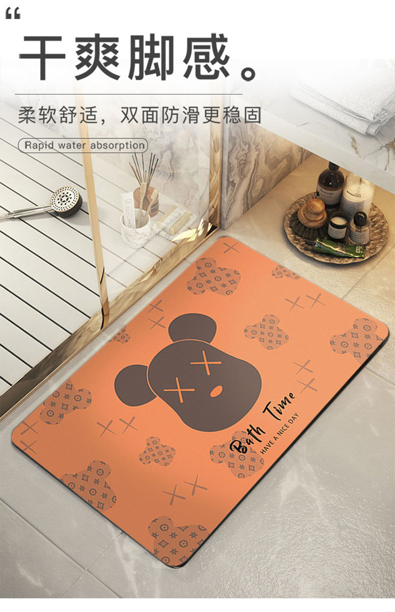 크리스탈 벨벳 욕실 매트, 초흡수 속건, 욕실 미끄럼 방지, 가정용 프린트 발매트, 속건 카펫스토어 가기