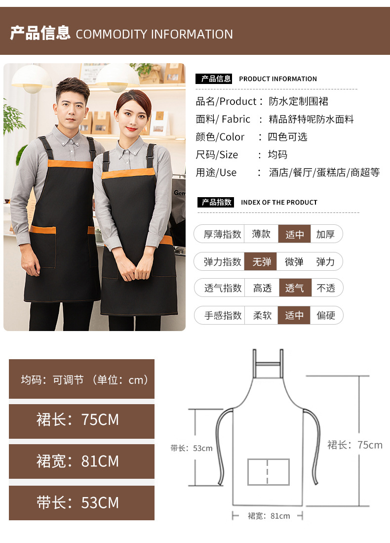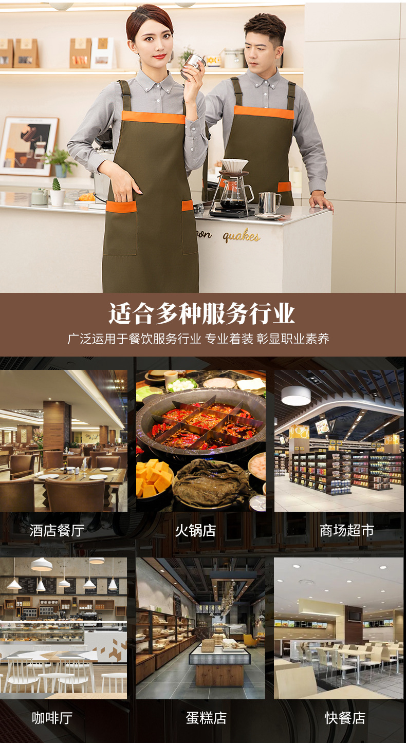 방수 앞치마 로고 인쇄 케이터링 우유 찻집 커피 숍 케이터링 간식 웨이터 허리 작업복 여성