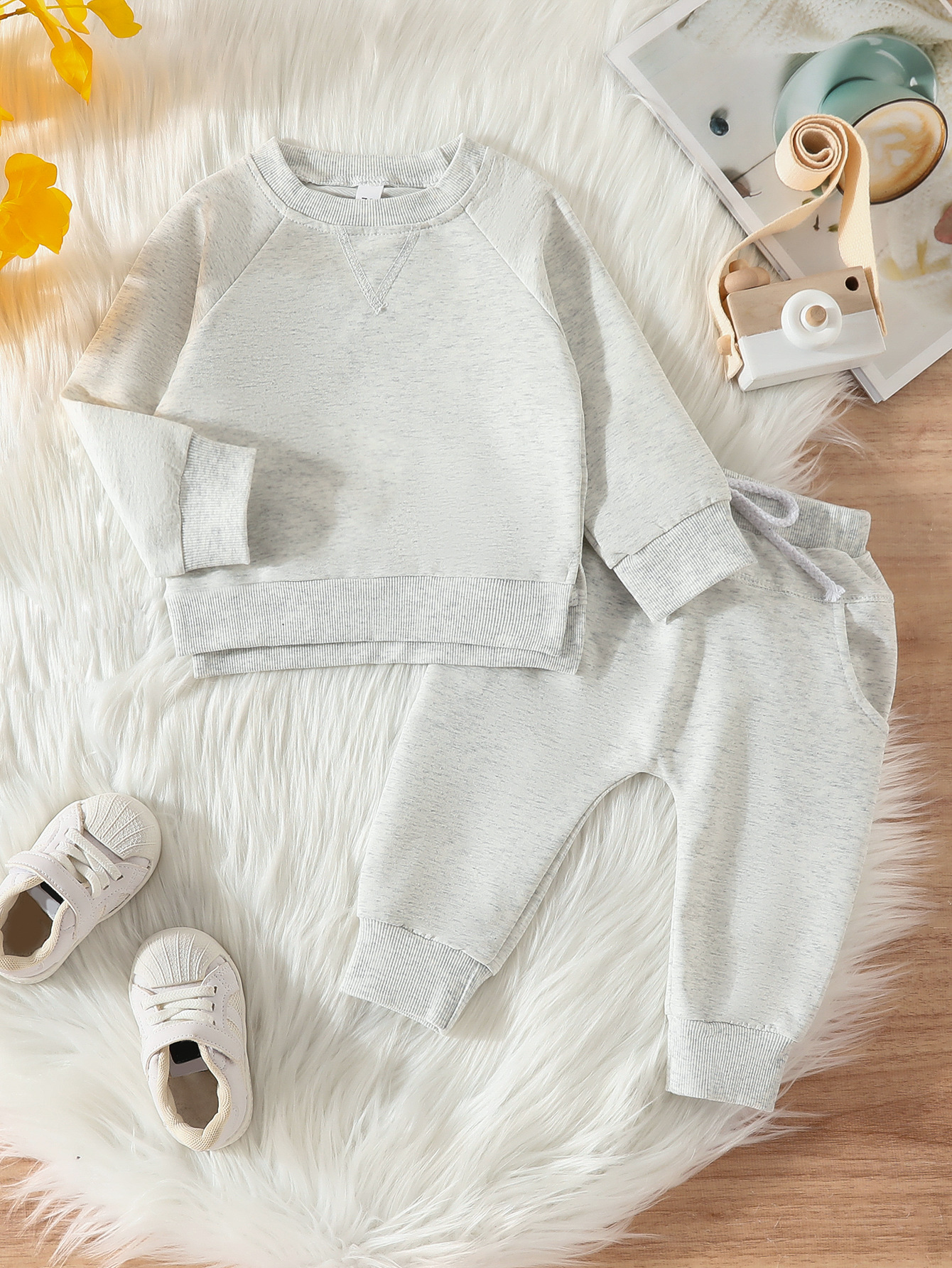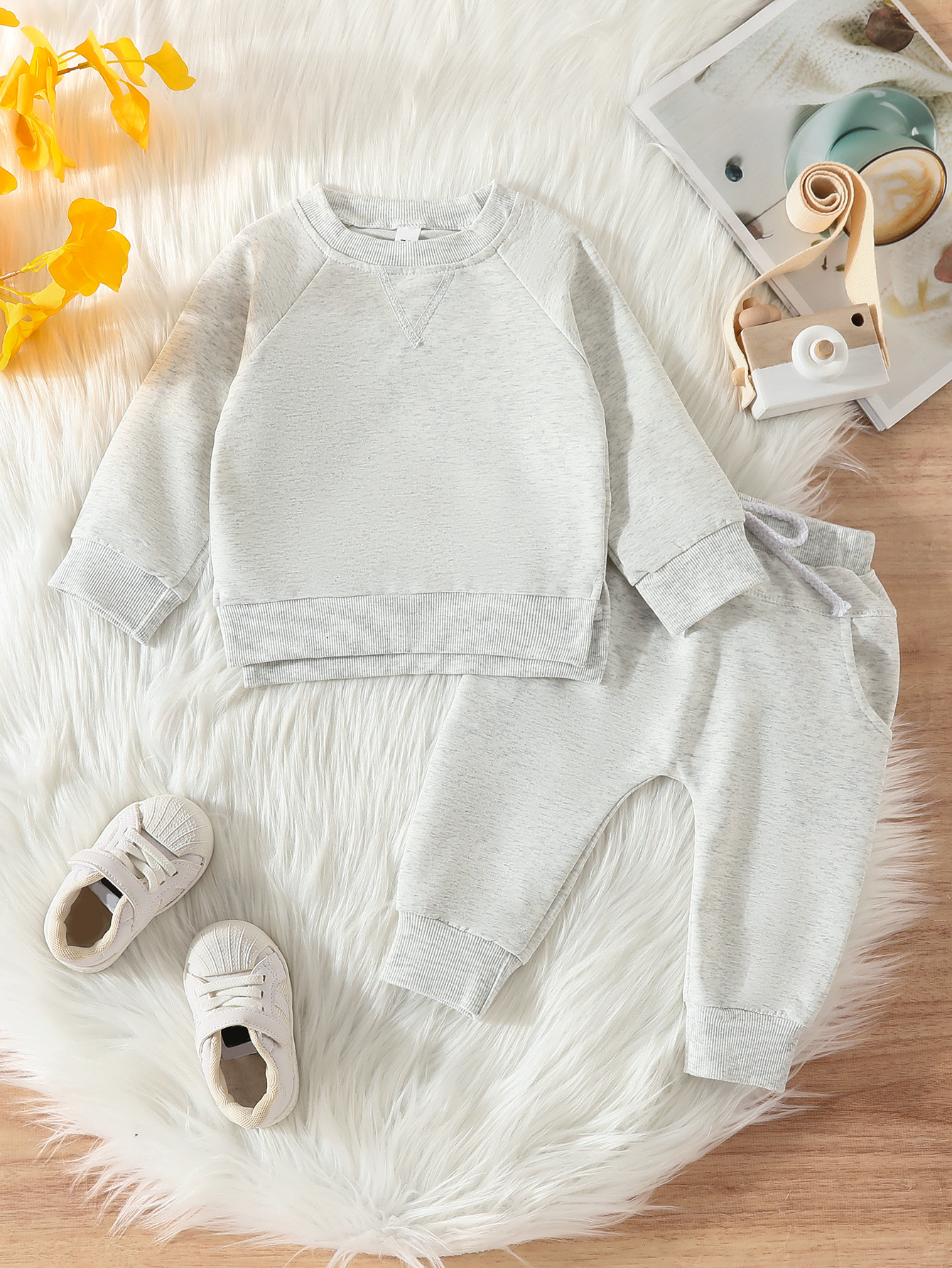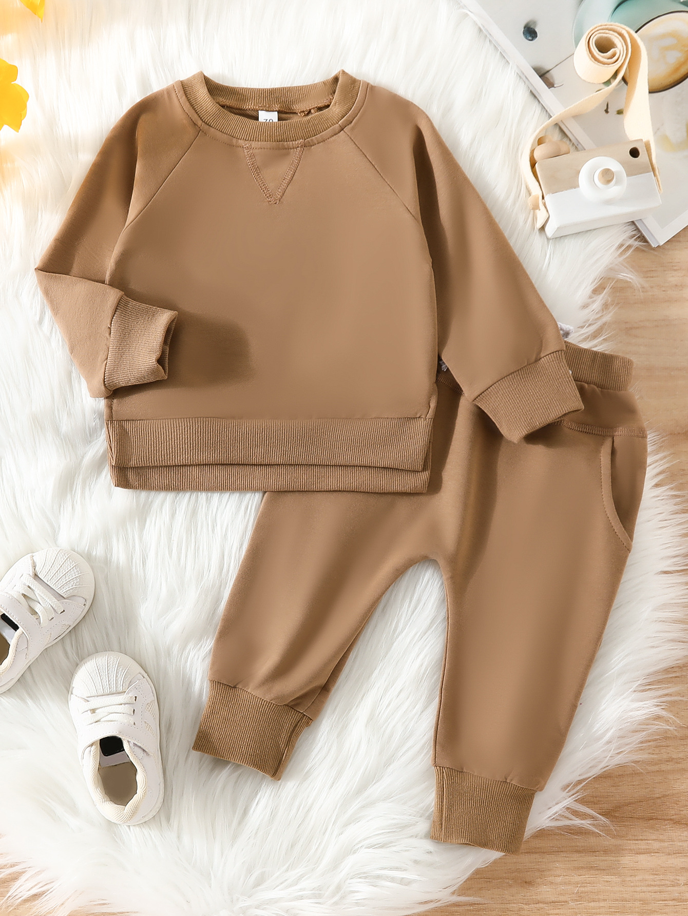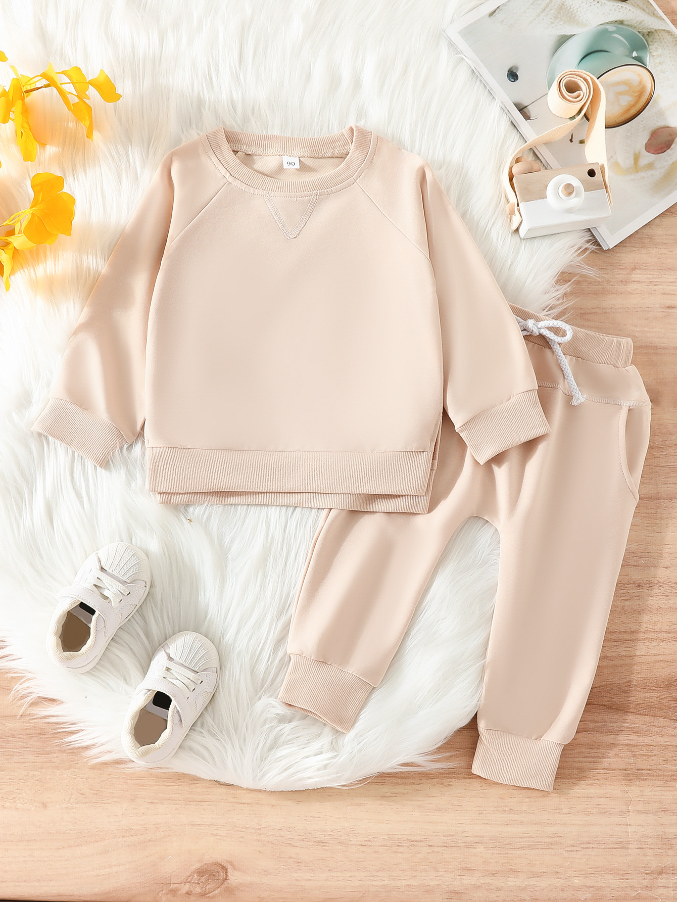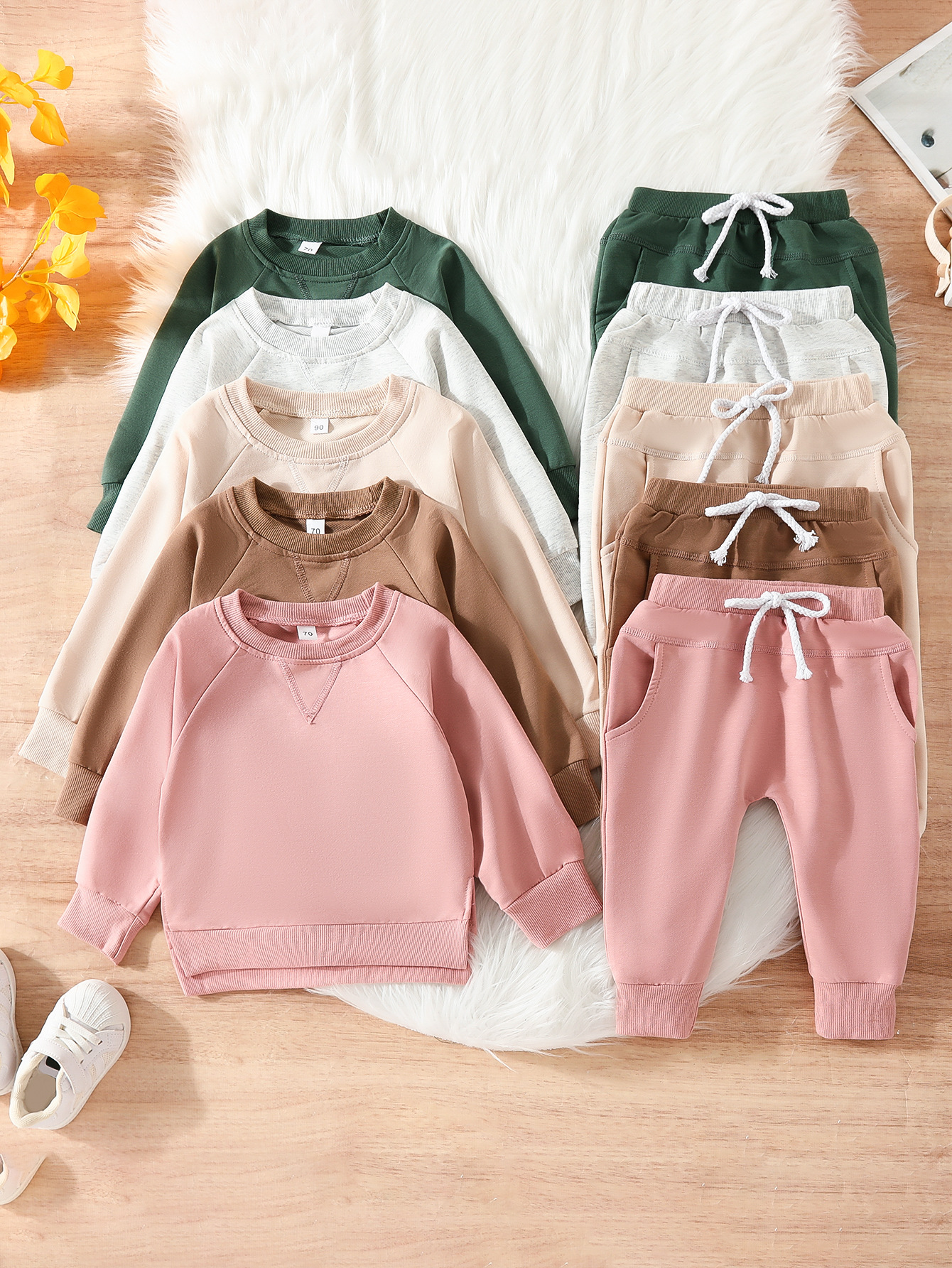 가을과 겨울 소년과 소녀 재고 새로운 세트 스웨터 긴 소매 바지 셔츠 아기 순수한 색상 기본 셔츠 가정 옷