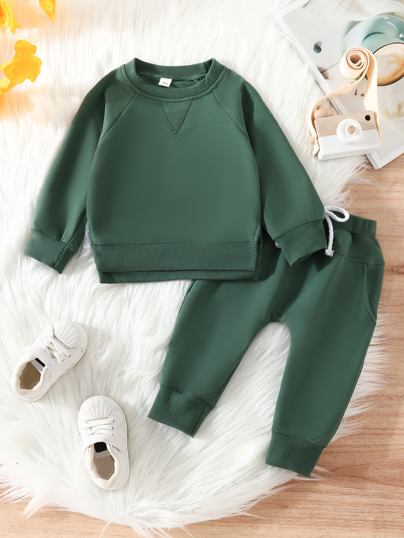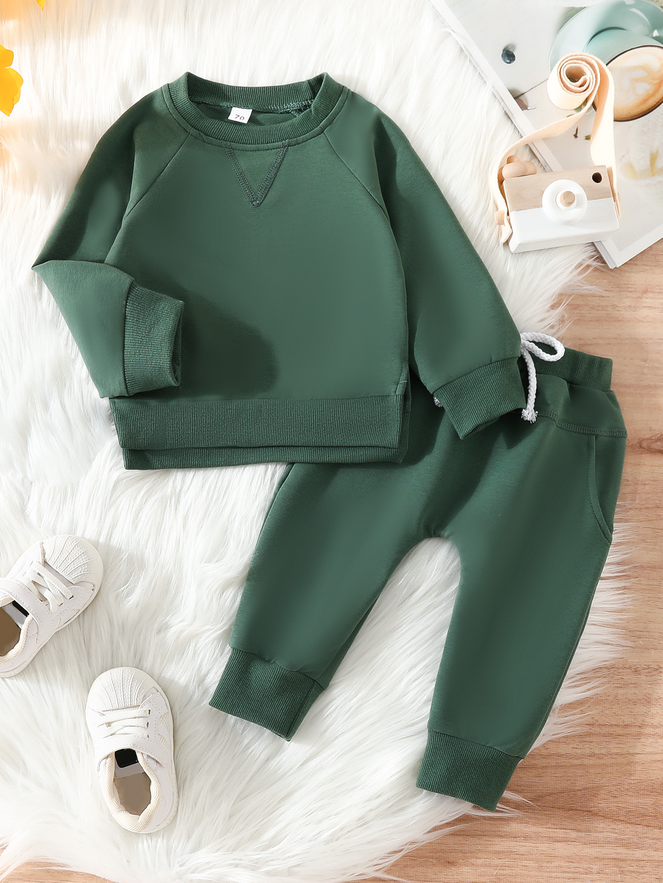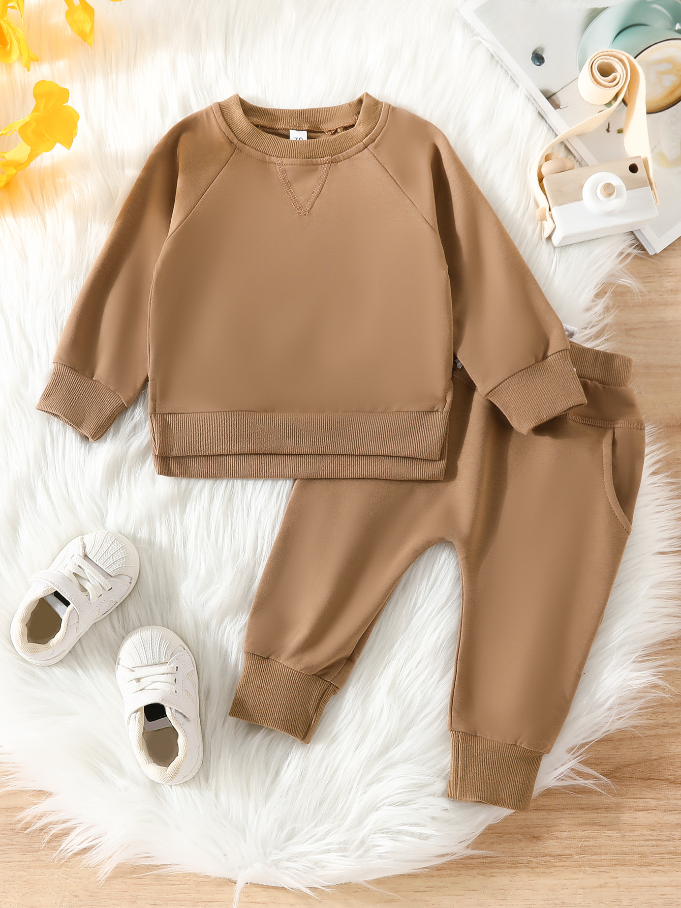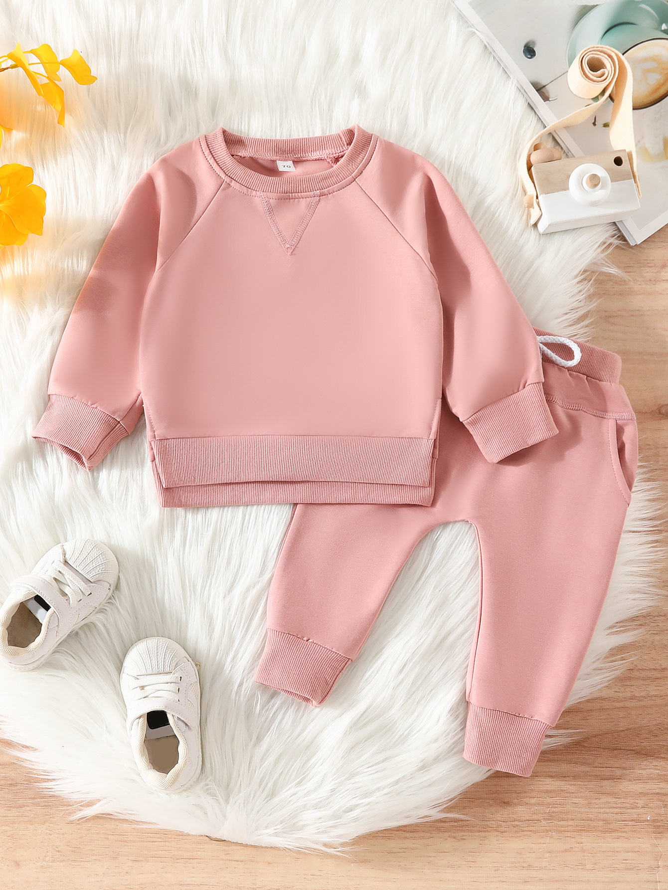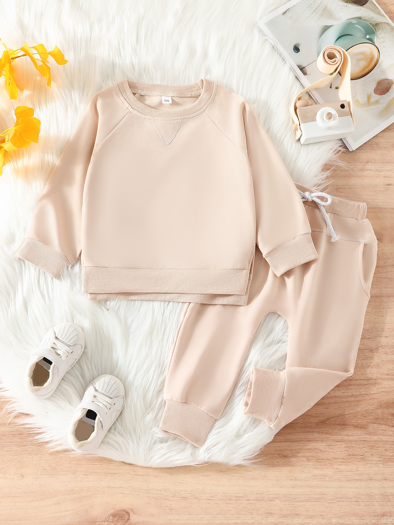 가을과 겨울 소년과 소녀 재고 새로운 세트 스웨터 긴 소매 바지 셔츠 아기 순수한 색상 기본 셔츠 가정 옷
