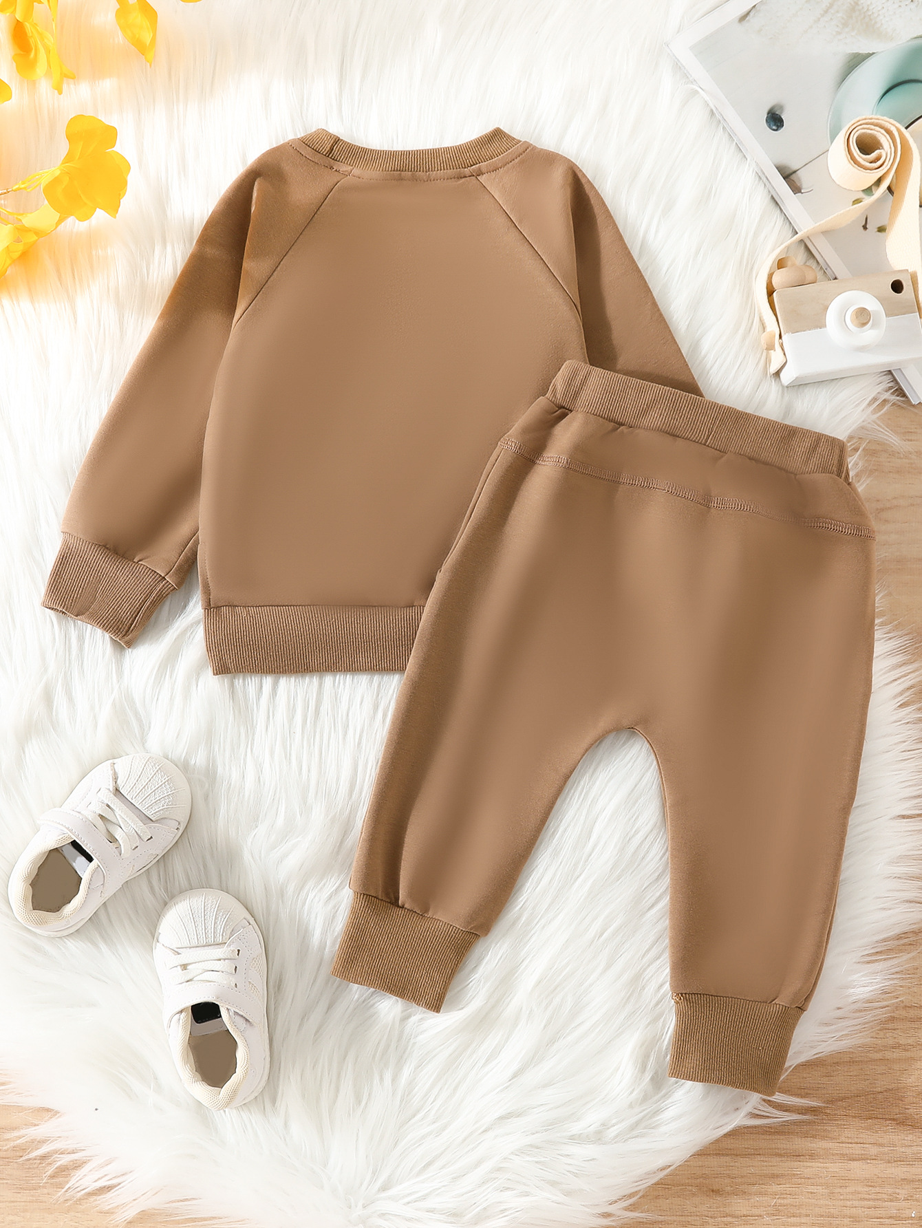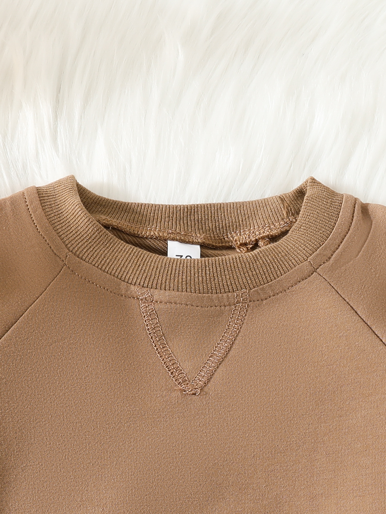 가을과 겨울 소년과 소녀 재고 새로운 세트 스웨터 긴 소매 바지 셔츠 아기 순수한 색상 기본 셔츠 가정 옷스토어 가기
