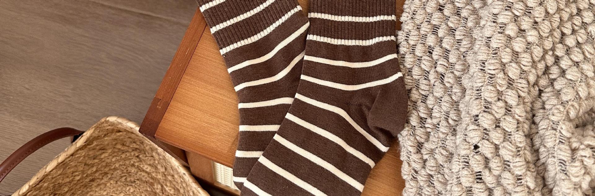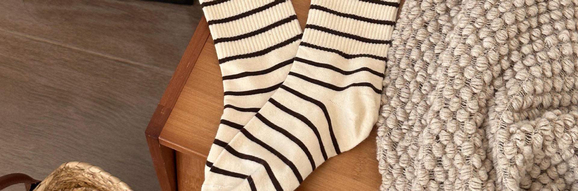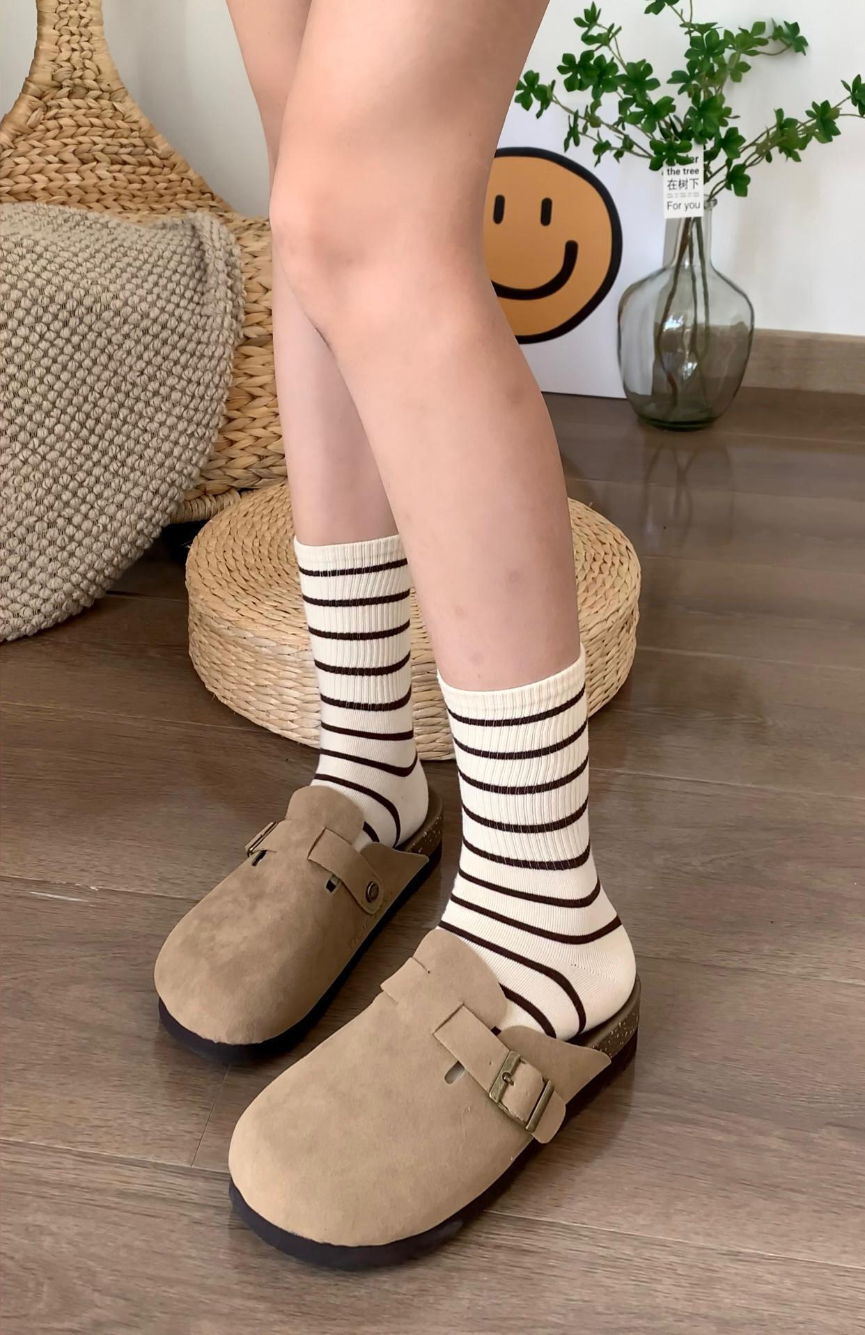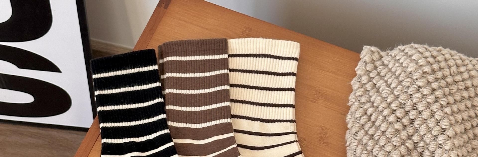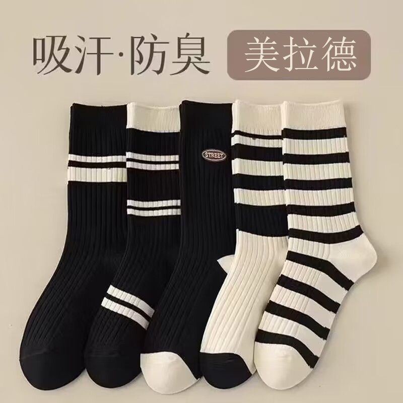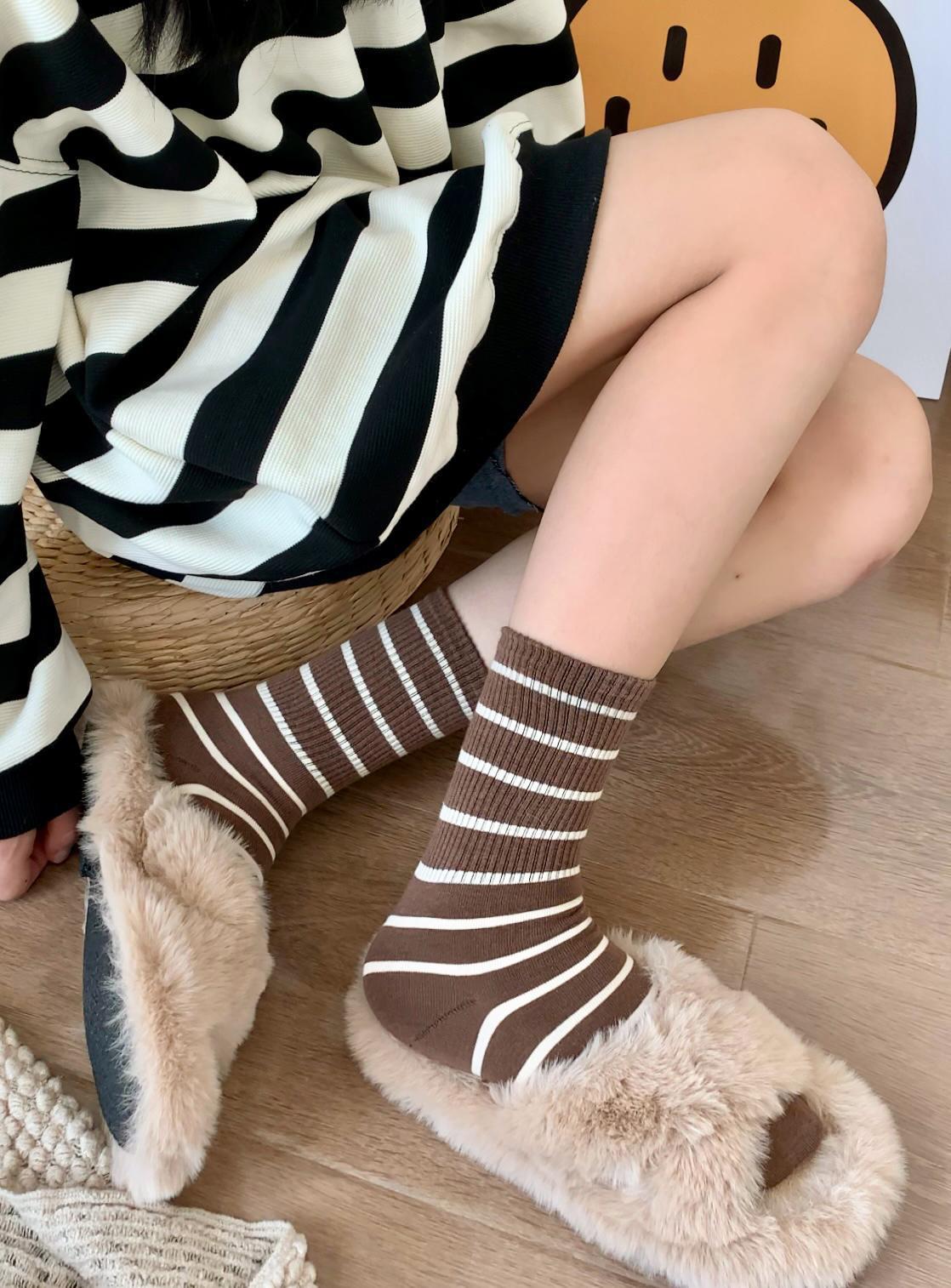 여성용 양말 스트라이프 심플 하이 스타킹 겉옷 중간 길이 인 트렌디 한 모든 매치 흑백 가을과 겨울 대학 스타일 여성 양말스토어 가기