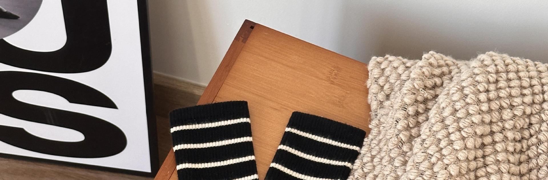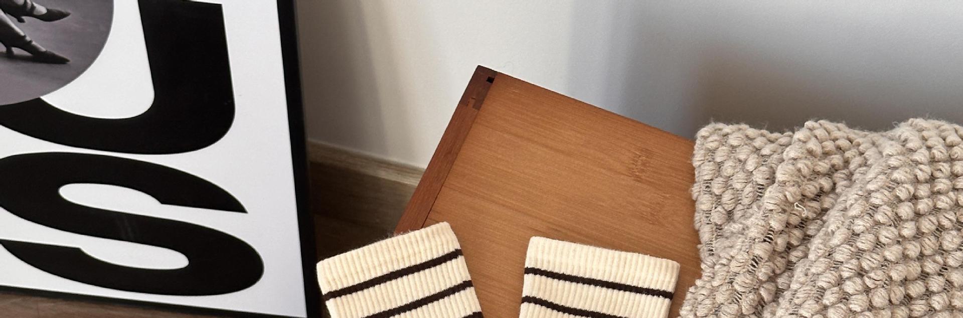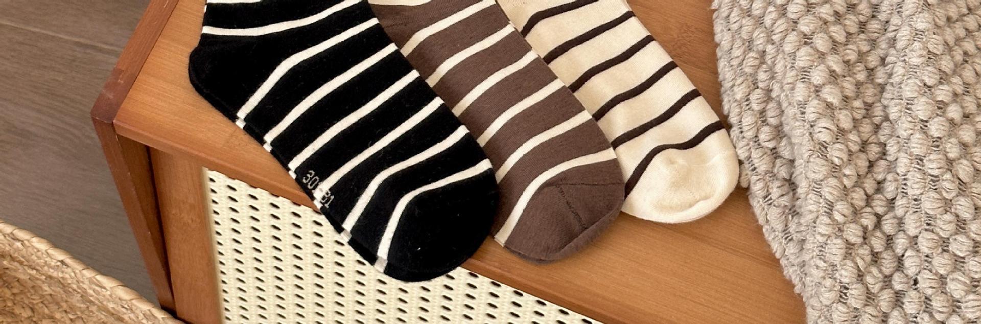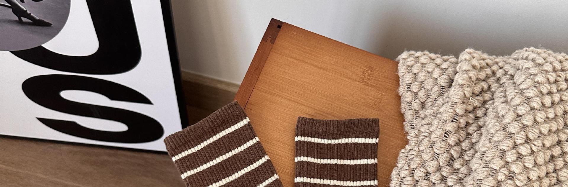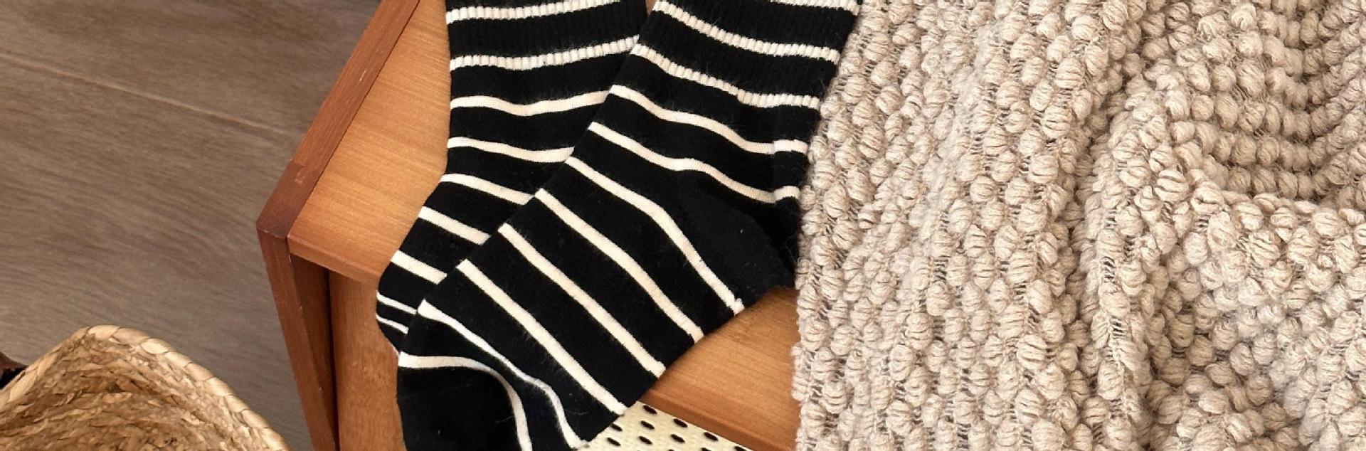 여성용 양말 스트라이프 심플 하이 스타킹 겉옷 중간 길이 인 트렌디 한 모든 매치 흑백 가을과 겨울 대학 스타일 여성 양말스토어 가기