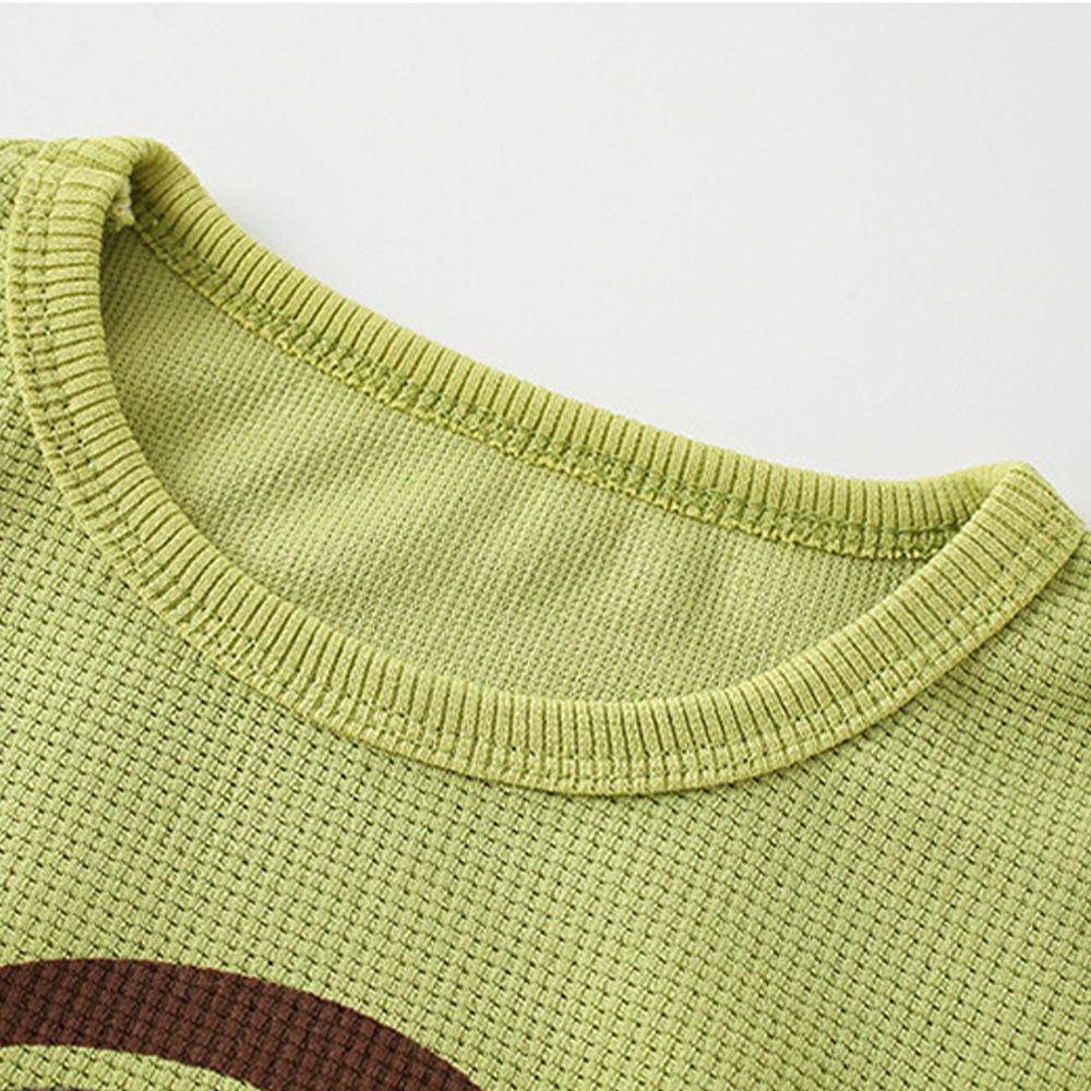 가을 아기 아동복 레인보우 패턴 와플 긴팔 탑 겉옷 긴팔 티셔츠 만화베이스 셔츠