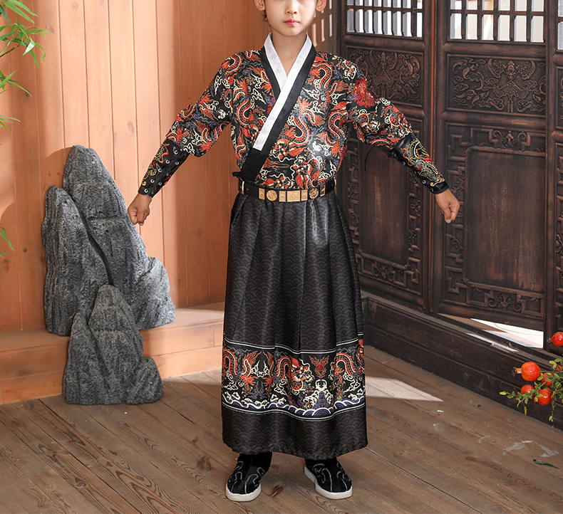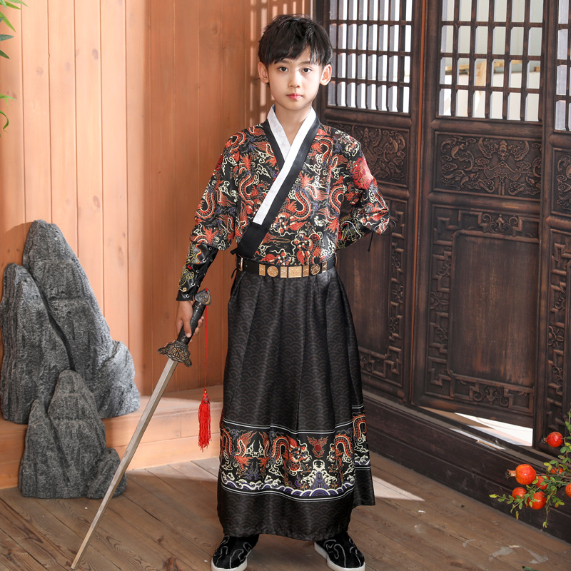 소년 Hanfu 슈퍼 잘 생긴 어린이 날치 의류 Jinyewei 무술 골동품 횡포 경비원 네 유명한 상점 파이썬 로브 드래곤 패턴