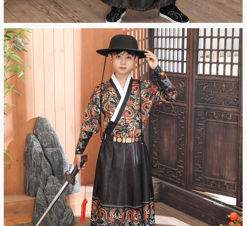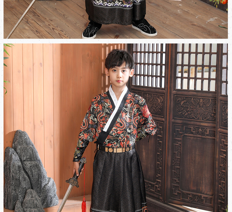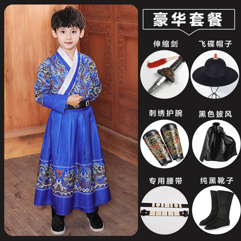 소년 Hanfu 슈퍼 잘 생긴 어린이 날치 의류 Jinyewei 무술 골동품 횡포 경비원 네 유명한 상점 파이썬 로브 드래곤 패턴스토어 가기