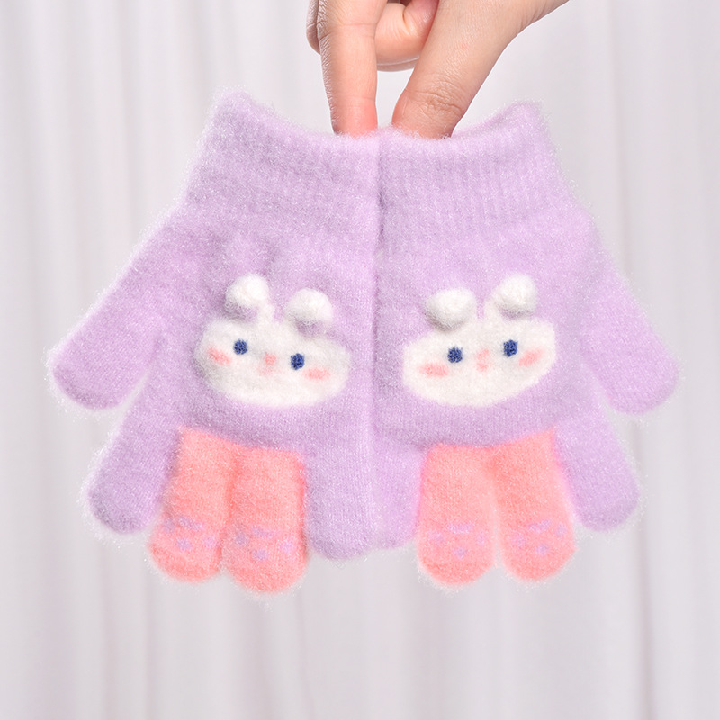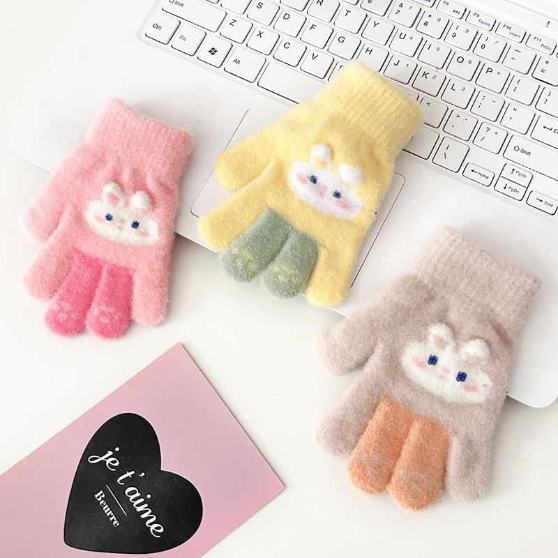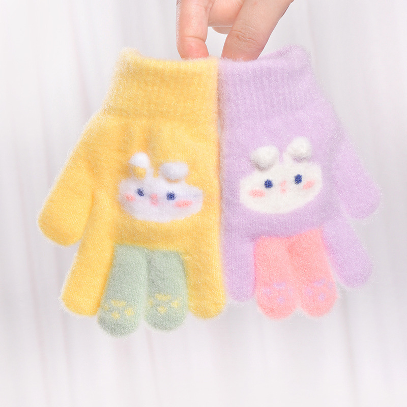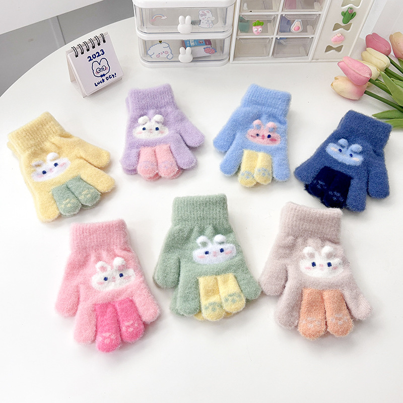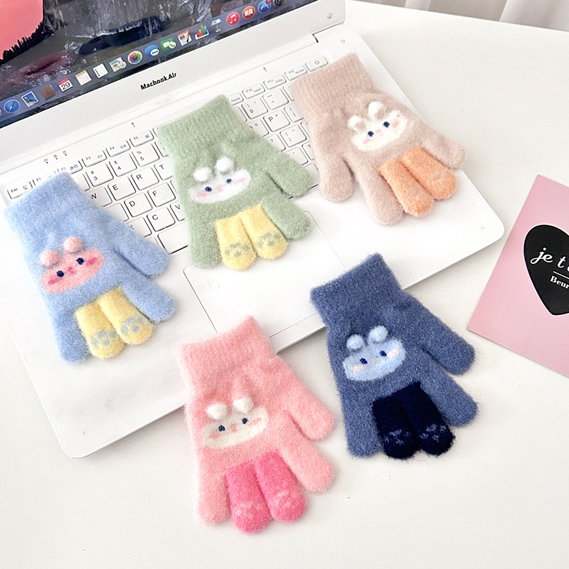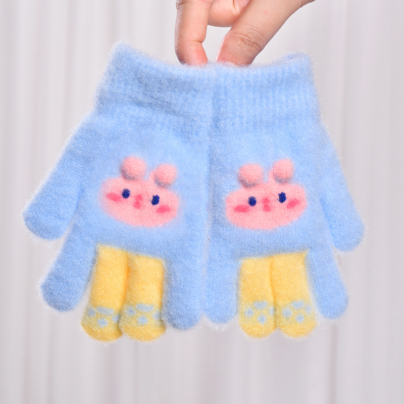 어린이 장갑 새로운 겨울 장갑 남성과 여성을위한 귀여운 만화 따뜻한 손가락 장갑 두꺼운 손가락 봉제 장갑