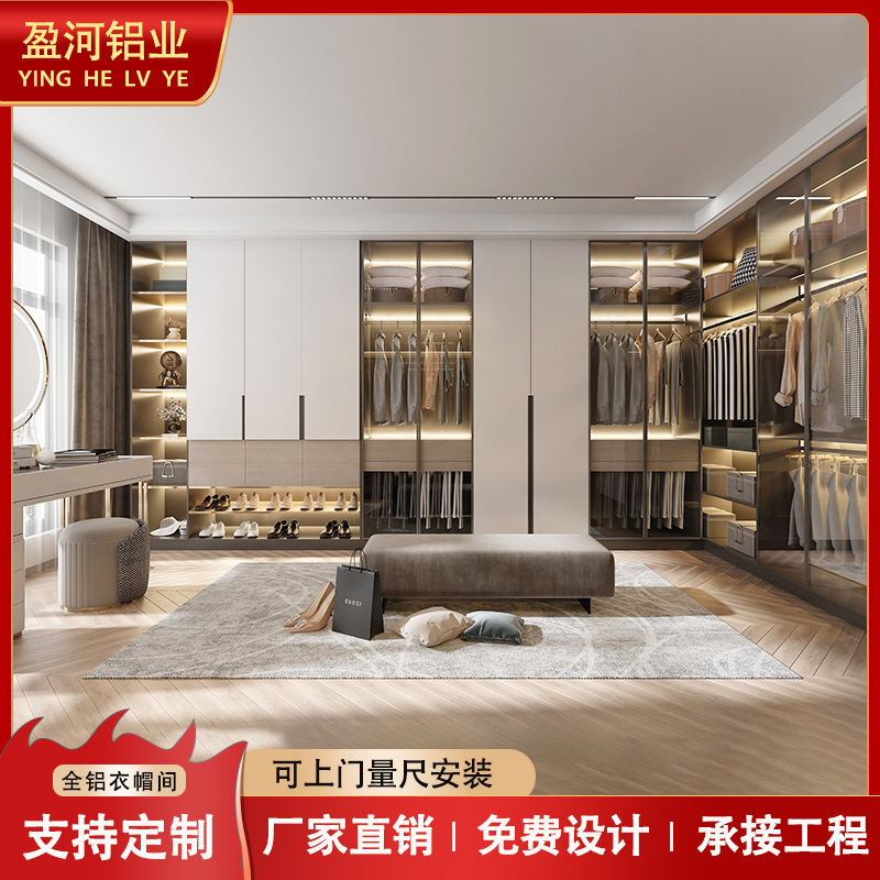 모든 알루미늄 가구 전체 집 맞춤형 가정용 모던 라이트 럭셔리 침실 금속 보관소 보관 및 보관 통합 알루미늄 옷장