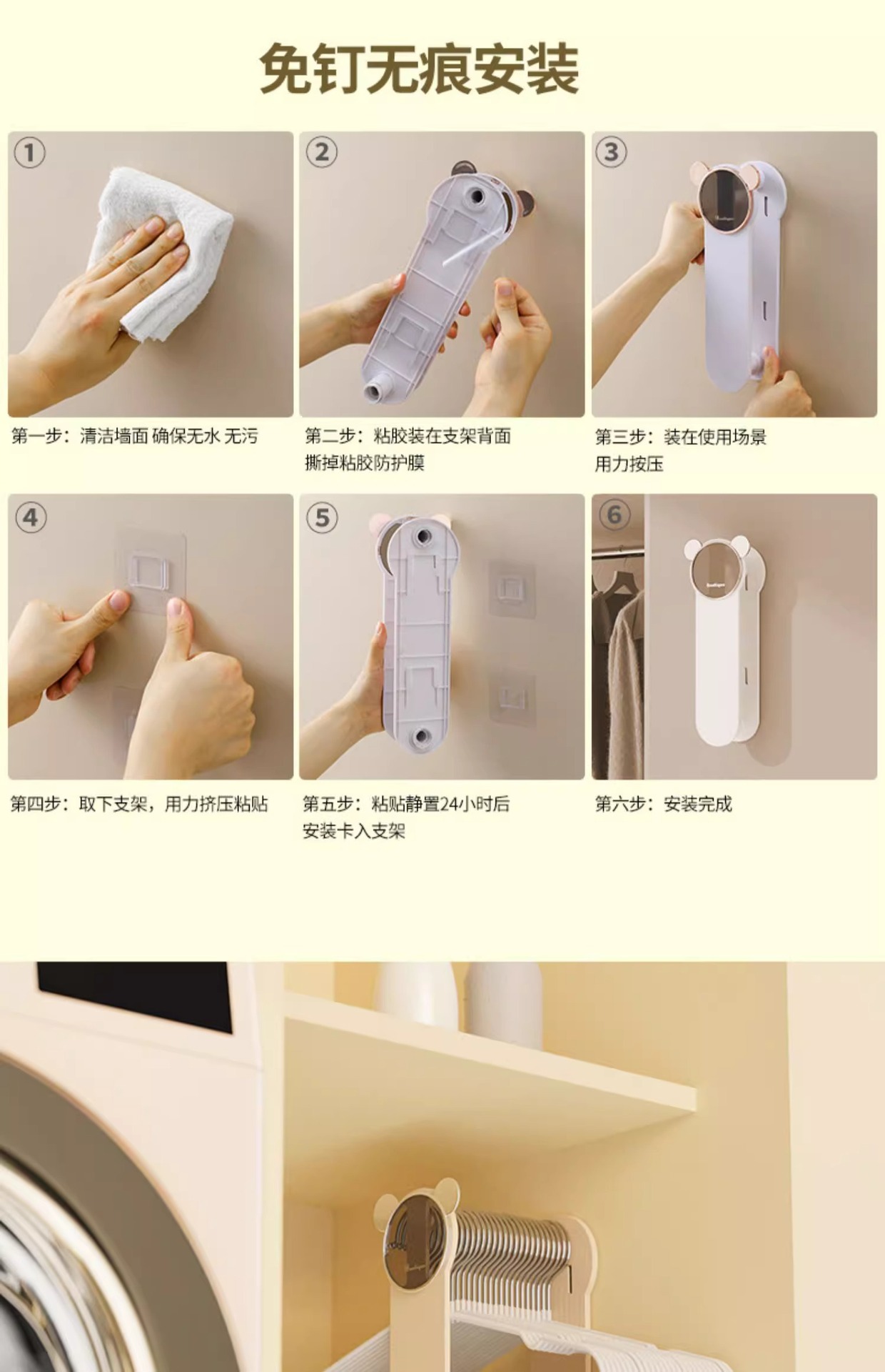 다기능 행거 수납 랙 펀치 프리 발코니 마감 행거 후크 욕실 벽걸이 형 의류 수납 랙스토어 가기
