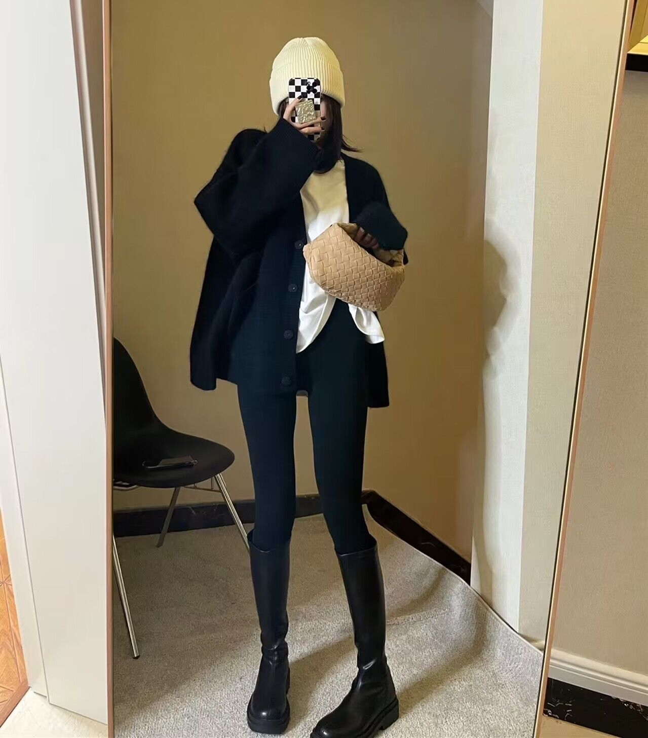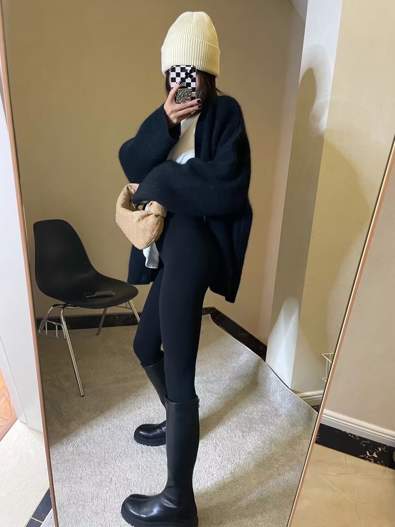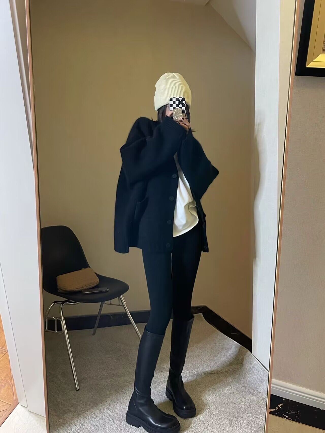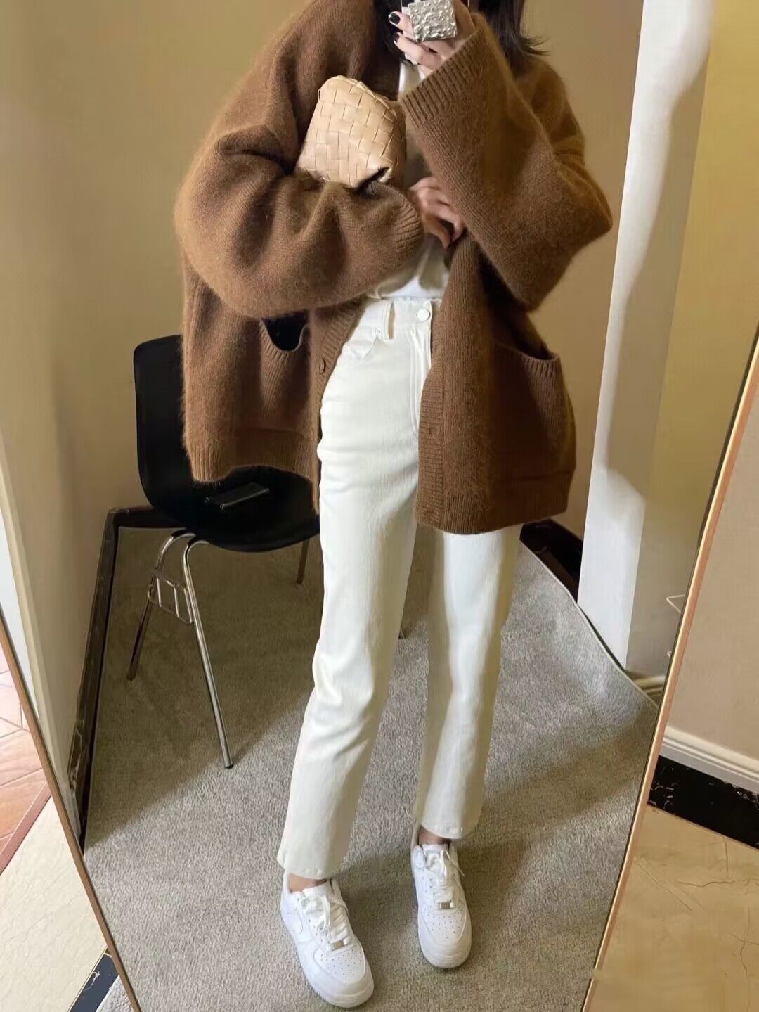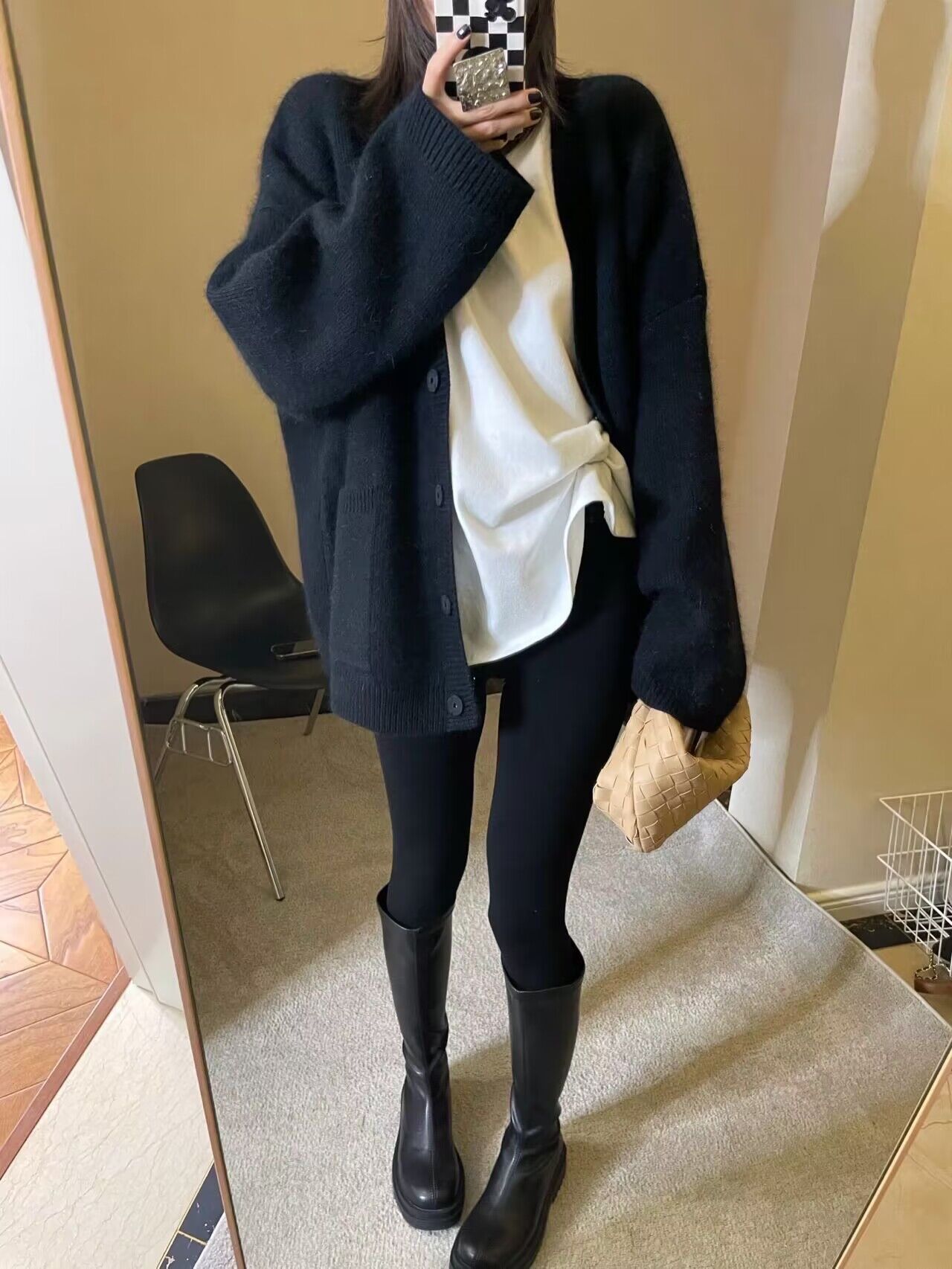 무거운 게으른 스타일 울 스웨터 여성용 카디건 V-Neck 중간 길이의 캐시미어 느슨한 프로필 스웨터 코트 니트스토어 가기