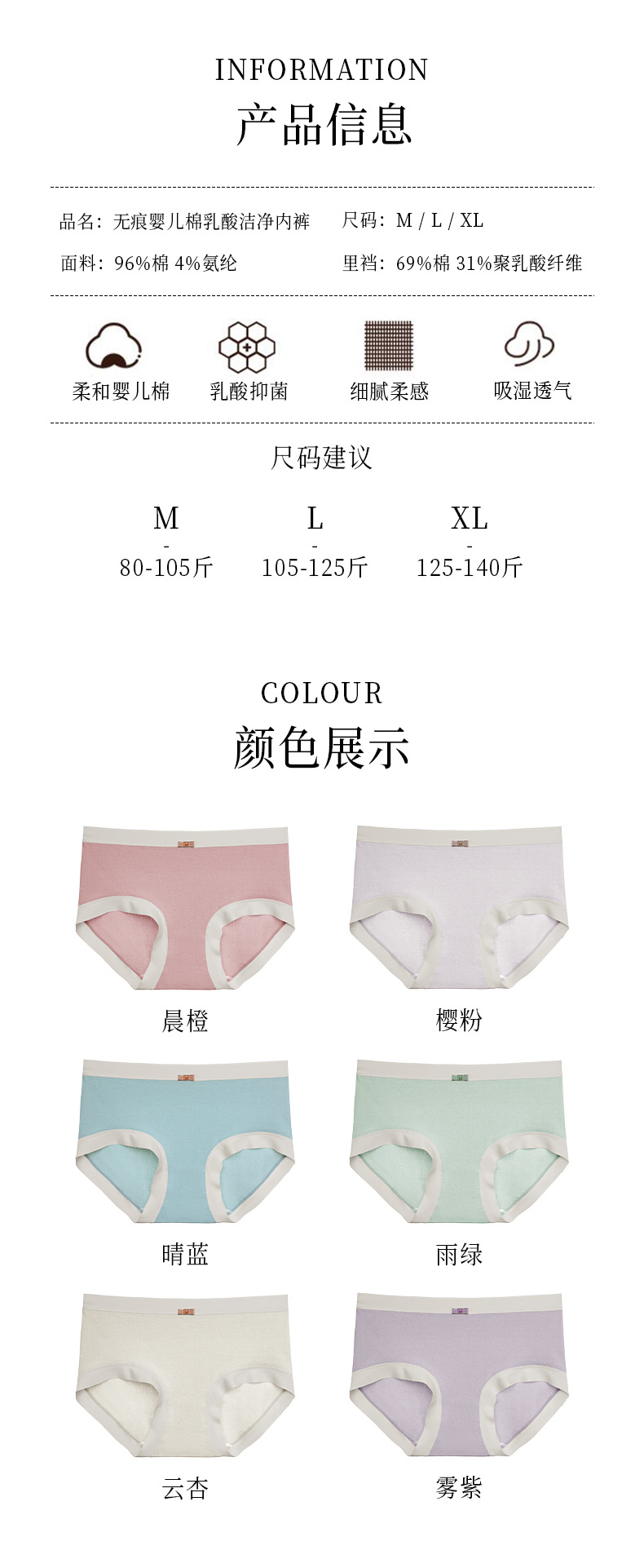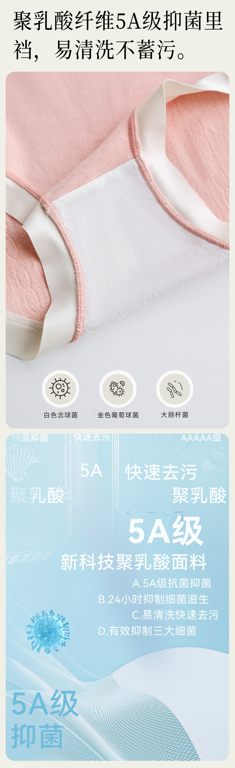# 2352 # 폴리락틱산 클린 크로치 A급 아기용 순면 무봉제 여성 속옷 피부친화적 소녀용 중간 허리 반바지 도매