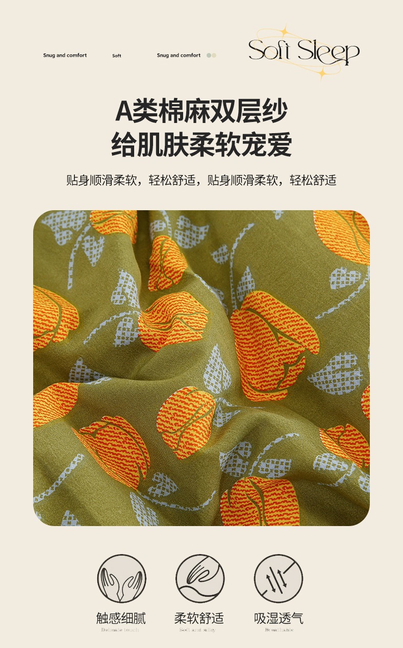 2025년 신상 레트로 플로럴 A급 면과 린넨 이중 거즈 두툼한 따뜻한 봄가을 이불스토어 가기