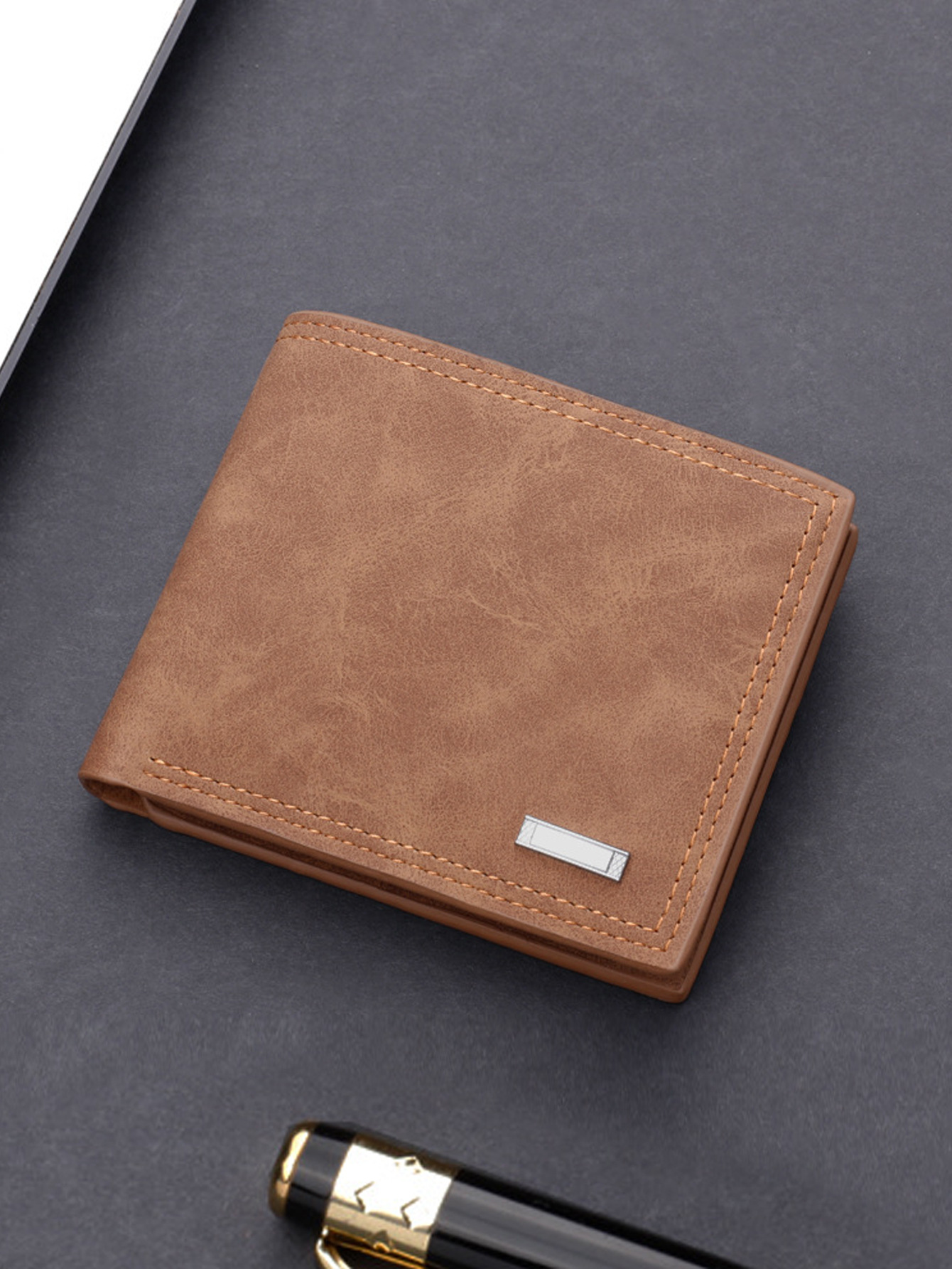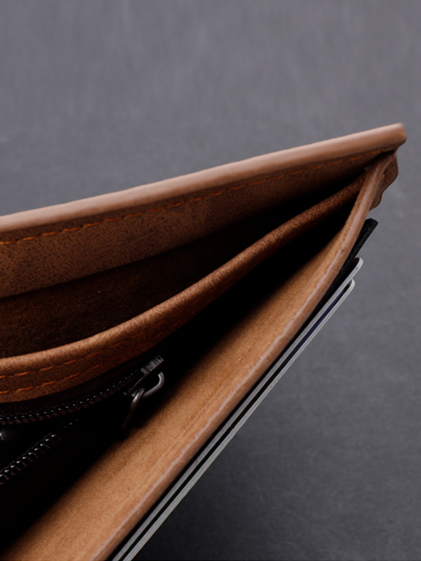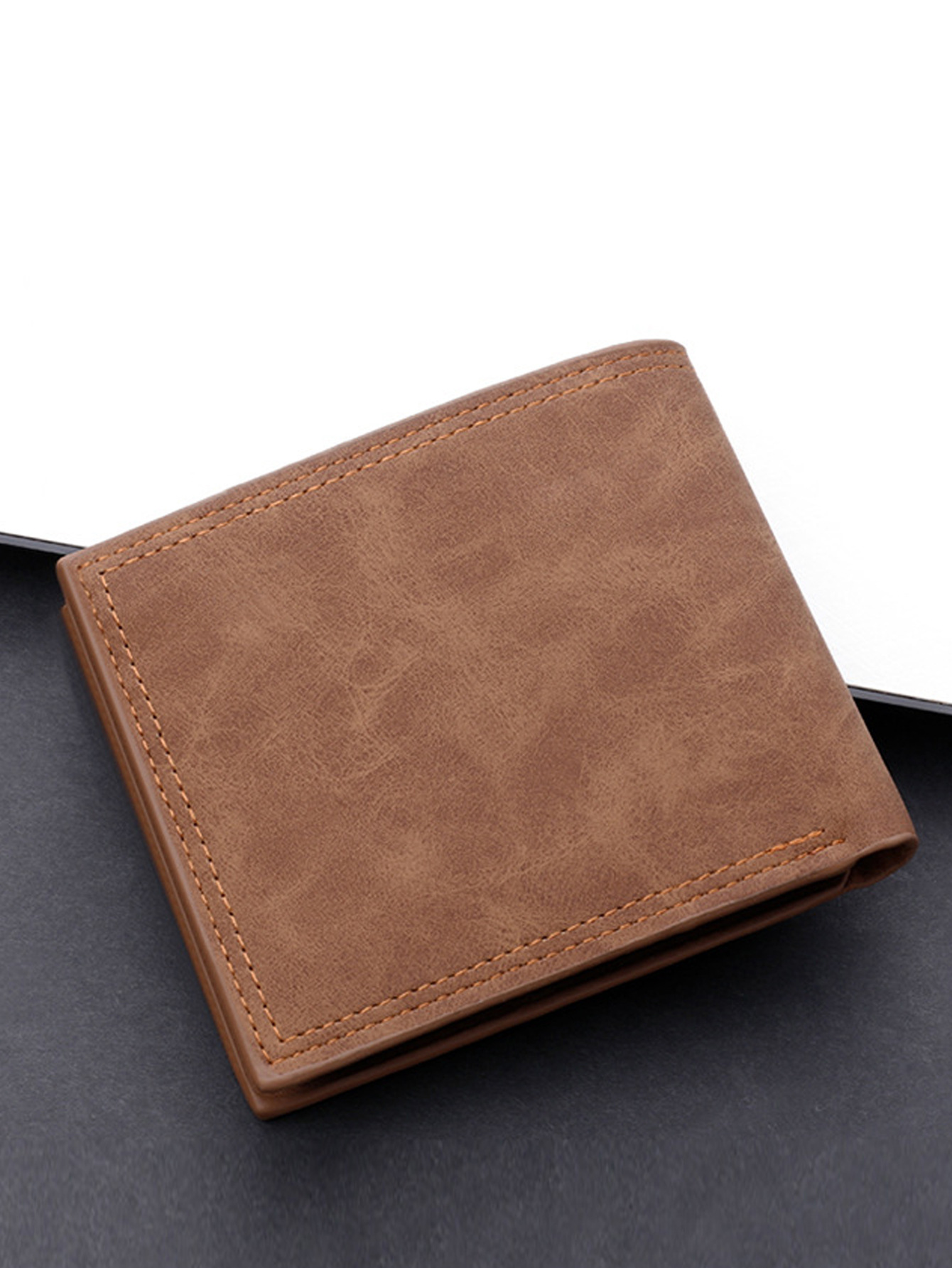 크로스 보더 지갑 지퍼 지갑이있는 남성용 짧은 멀티 카드 지갑 수평 티켓 홀더 빈티지 젖빛 가죽 심플스토어 가기
