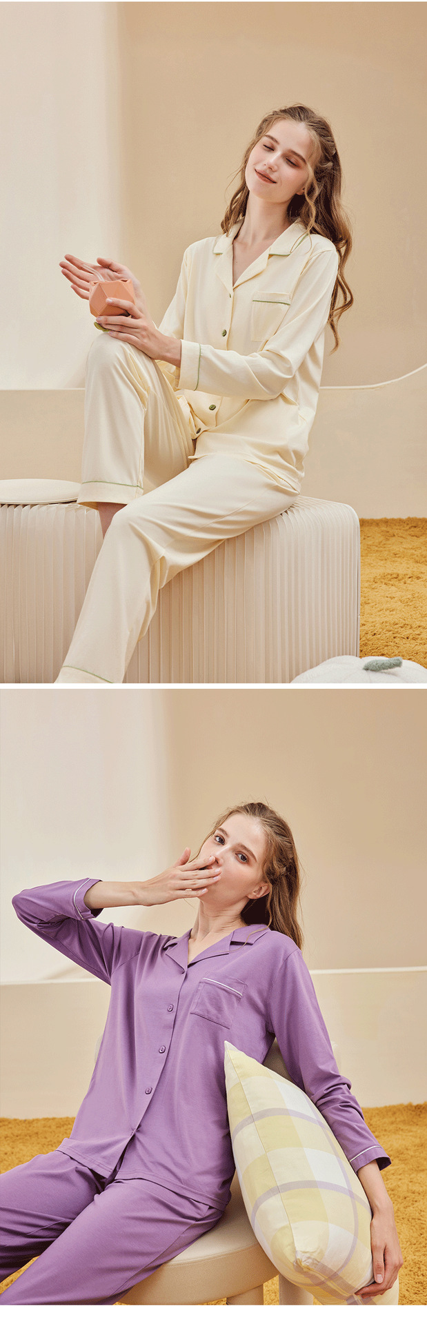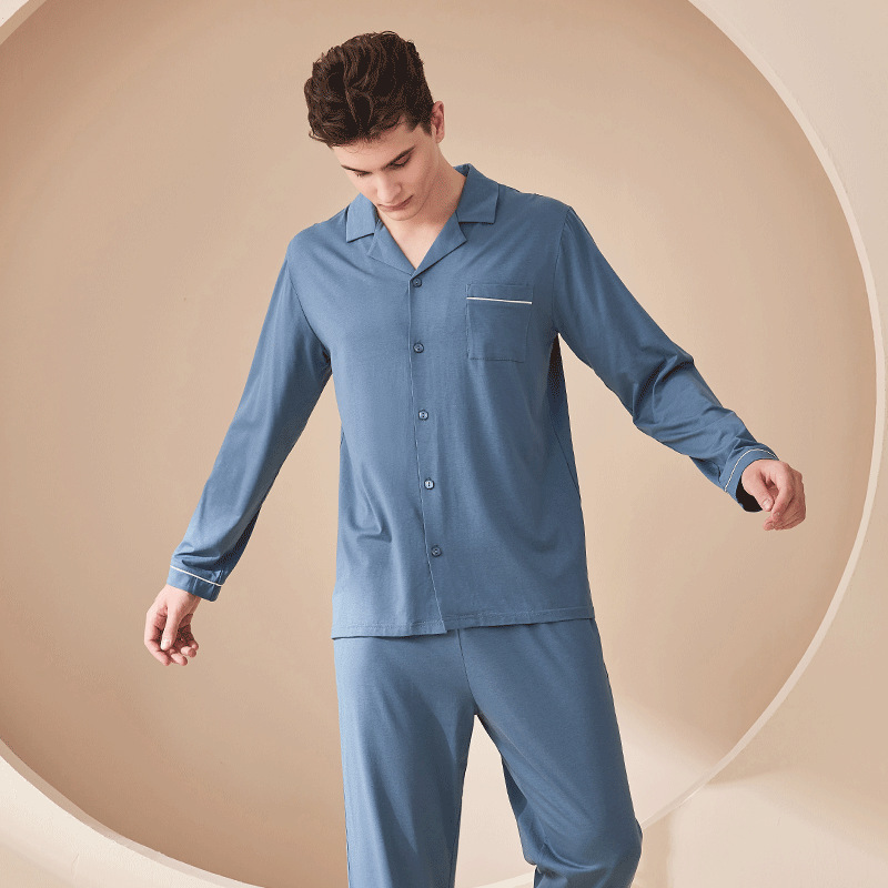 란징 모달 코튼 여성용 가을 잠옷 세트, 심플한 디자인, 긴팔, 단색 홈웨어 도매스토어 가기
