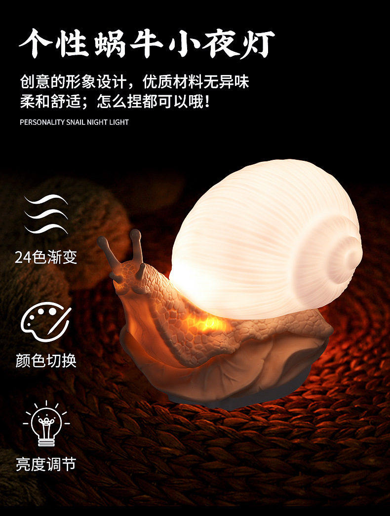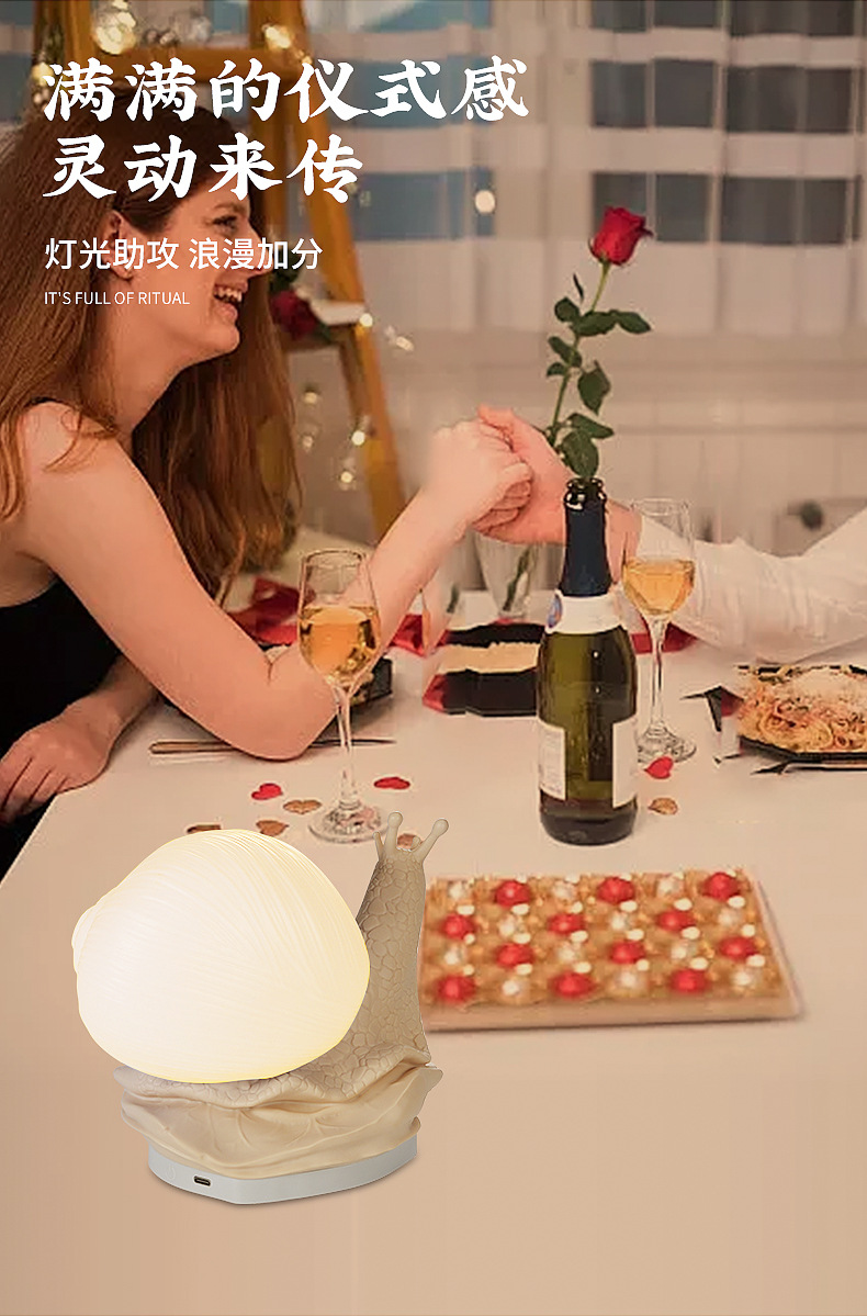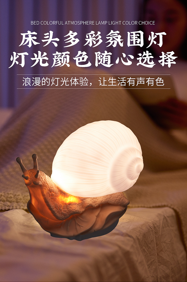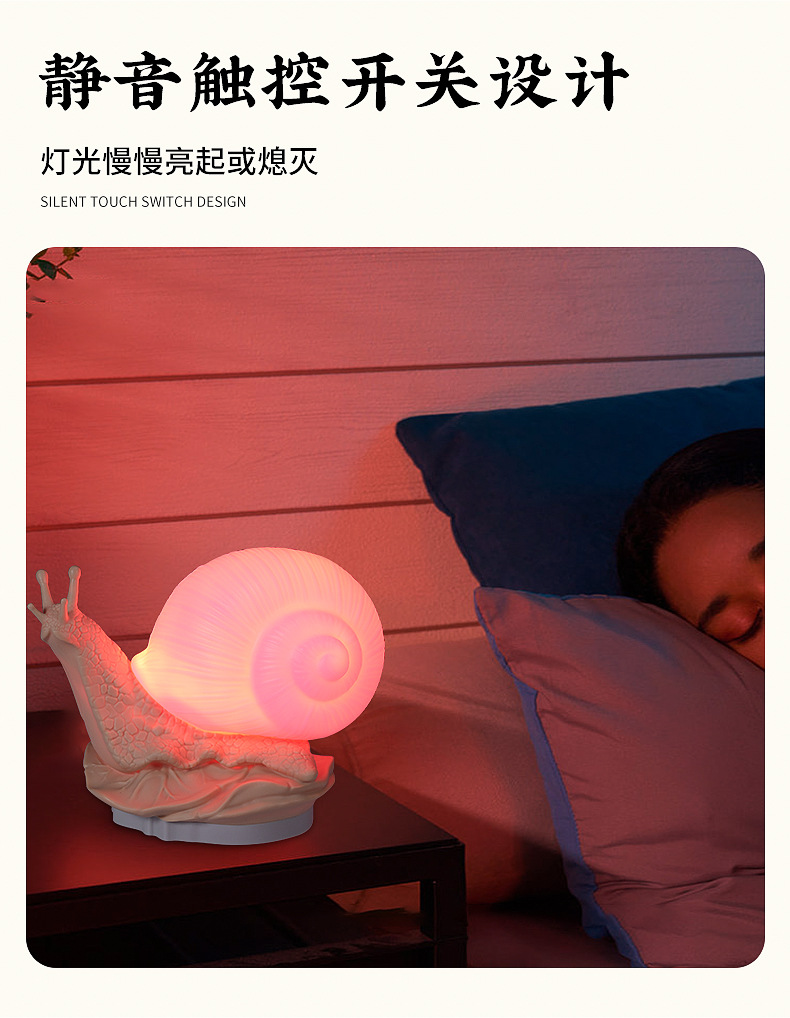 귀엽고 참신하며 창의적인 모형 달팽이 무드등, 터치로 밝기 조절 가능한 침실 침대 옆 장식용 분위기 조명