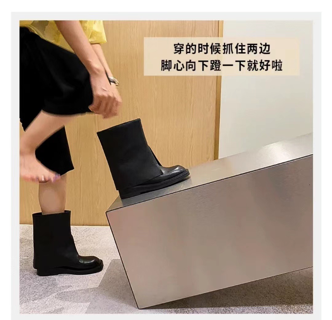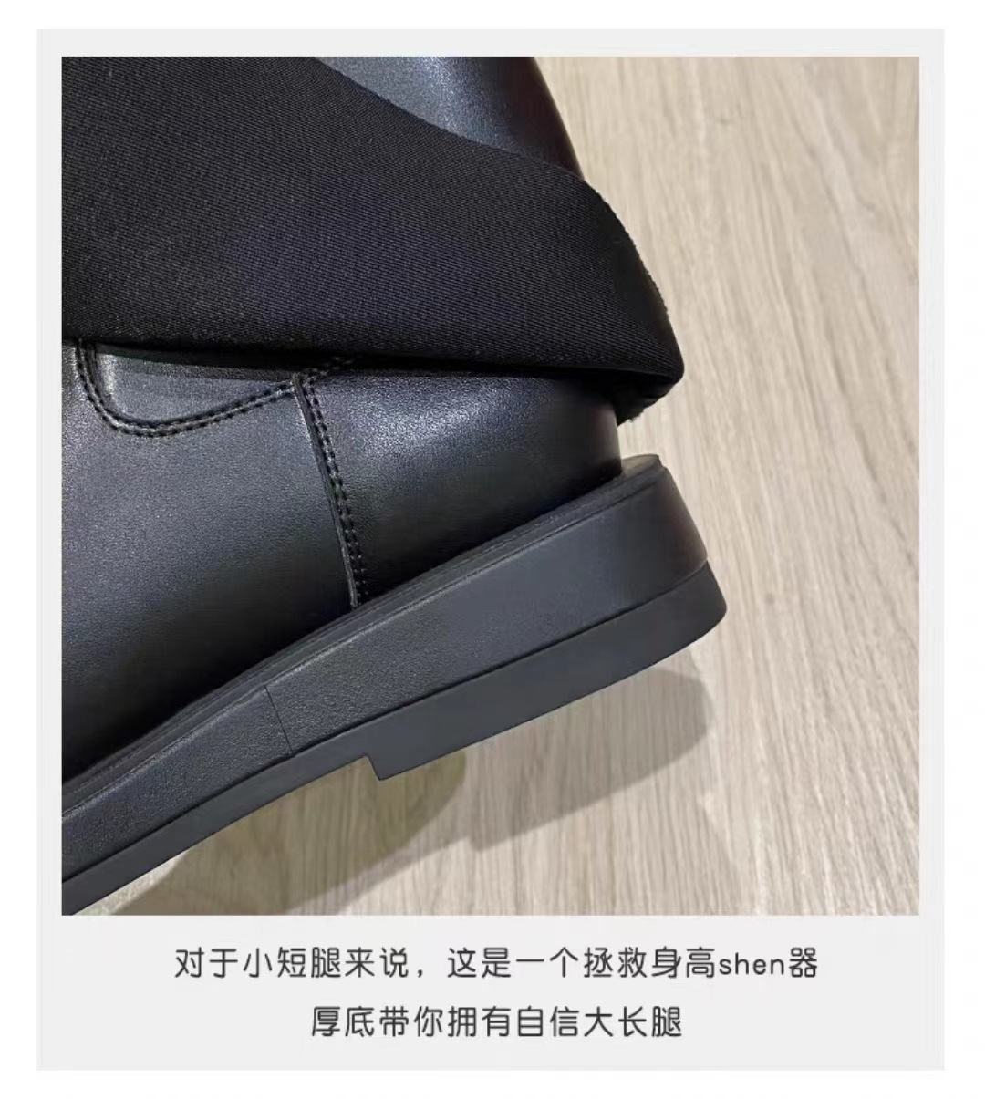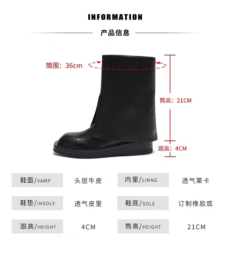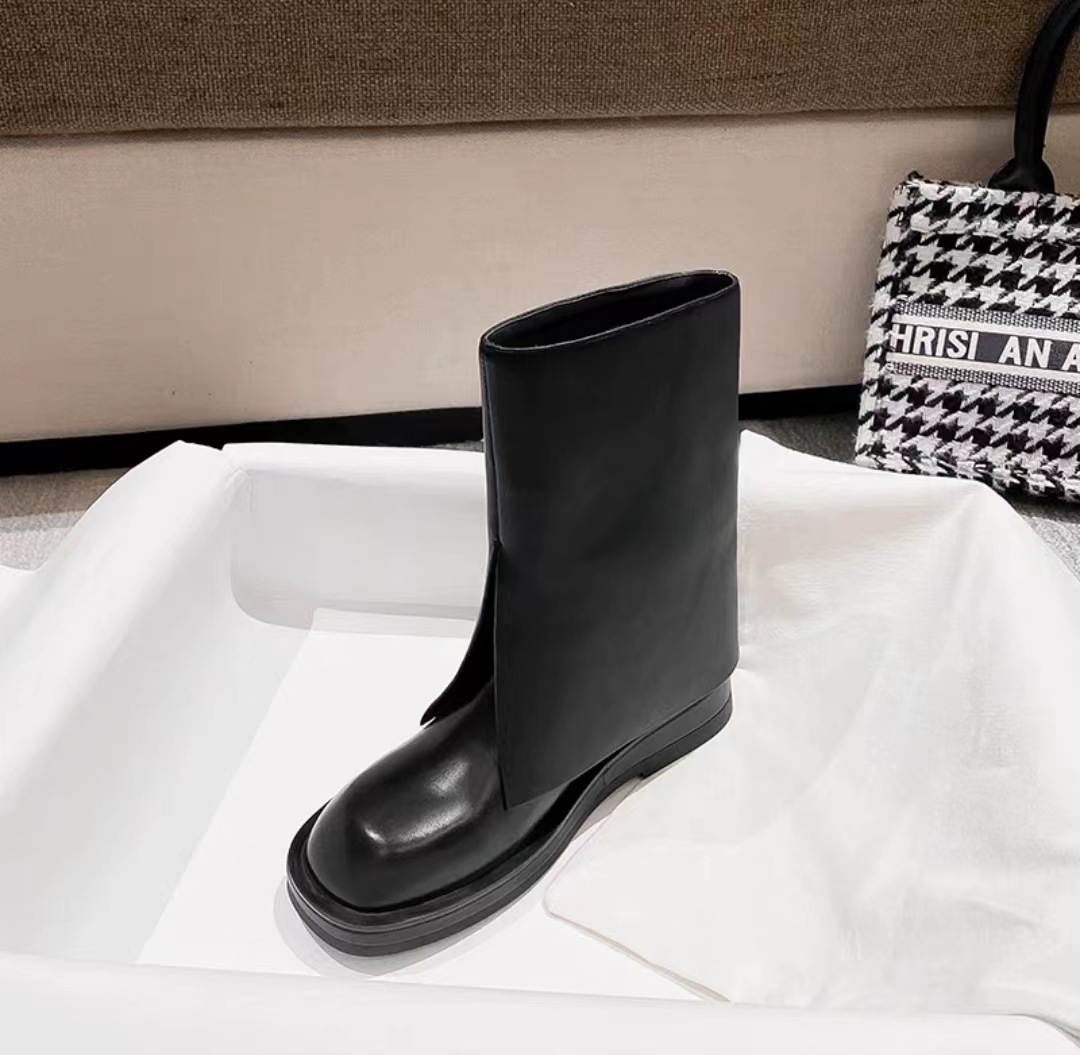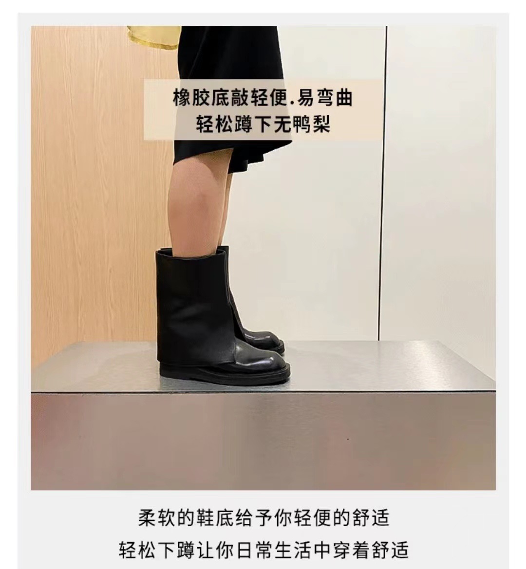 스타 같은 스타일 정품 가죽 플랫 부츠 마틴 부츠 바지 중간 길이 부츠 여성용 스키니 레그 나이트 부츠 세련된 짧은 페달